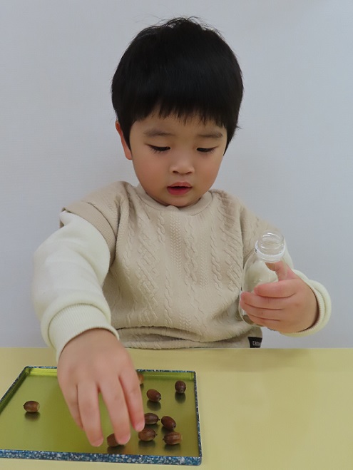 ピアノの音に合わせた挨拶の歌など、手振りをしながら参加することが増えてきた子どもたち。季節の歌でも振り付けを一緒に楽しめるようにしたいと思います。