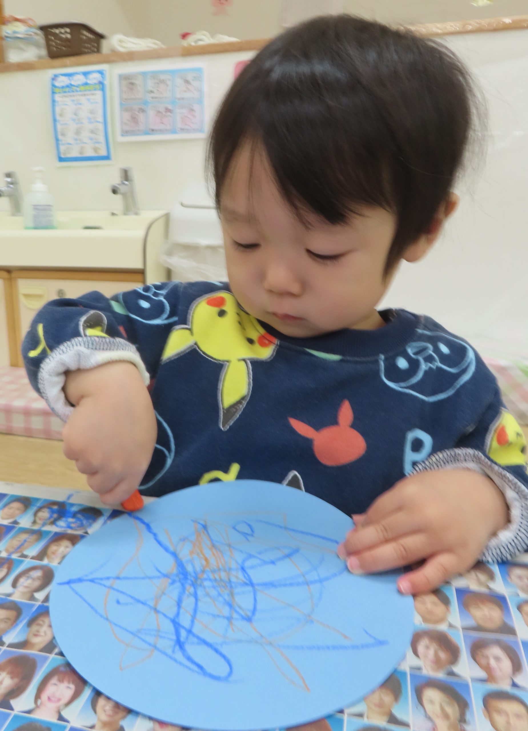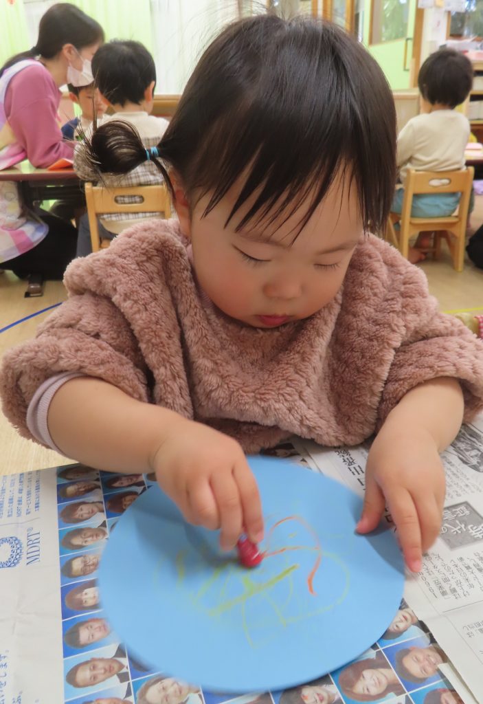 ぞう組さんは、豪快に丸画用紙全体を塗っている子が多かったです。