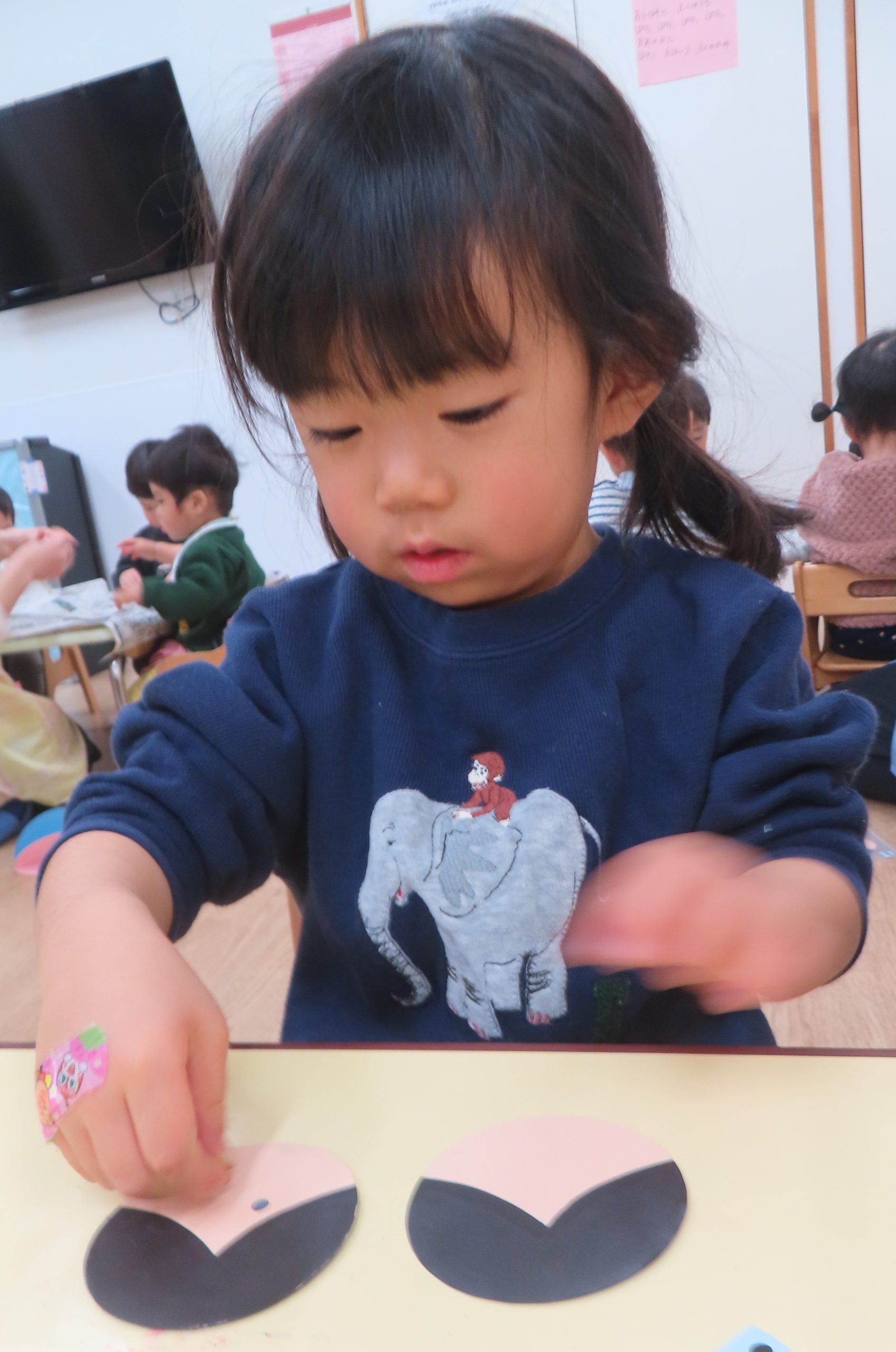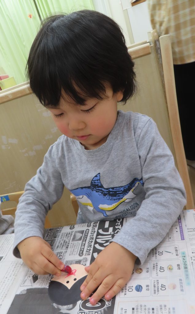 目のシールはとても小さかったのですが、指先が器用になった子どもたちは自分で貼ることができていました。成長を感じます✨