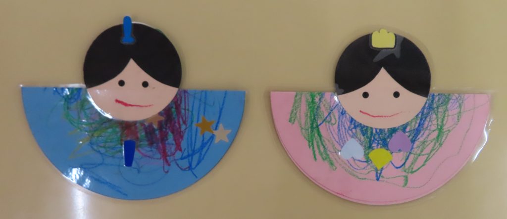 お内裏様とお雛様のお洋服をクレヨンとシールで可愛くデコレーション✨