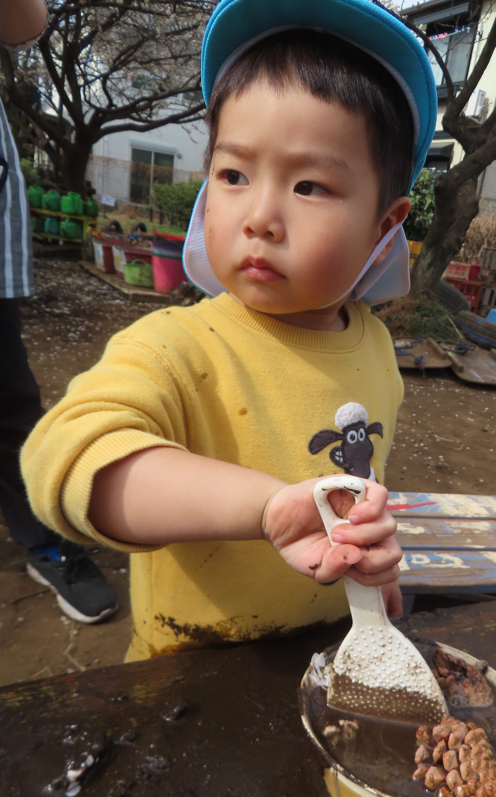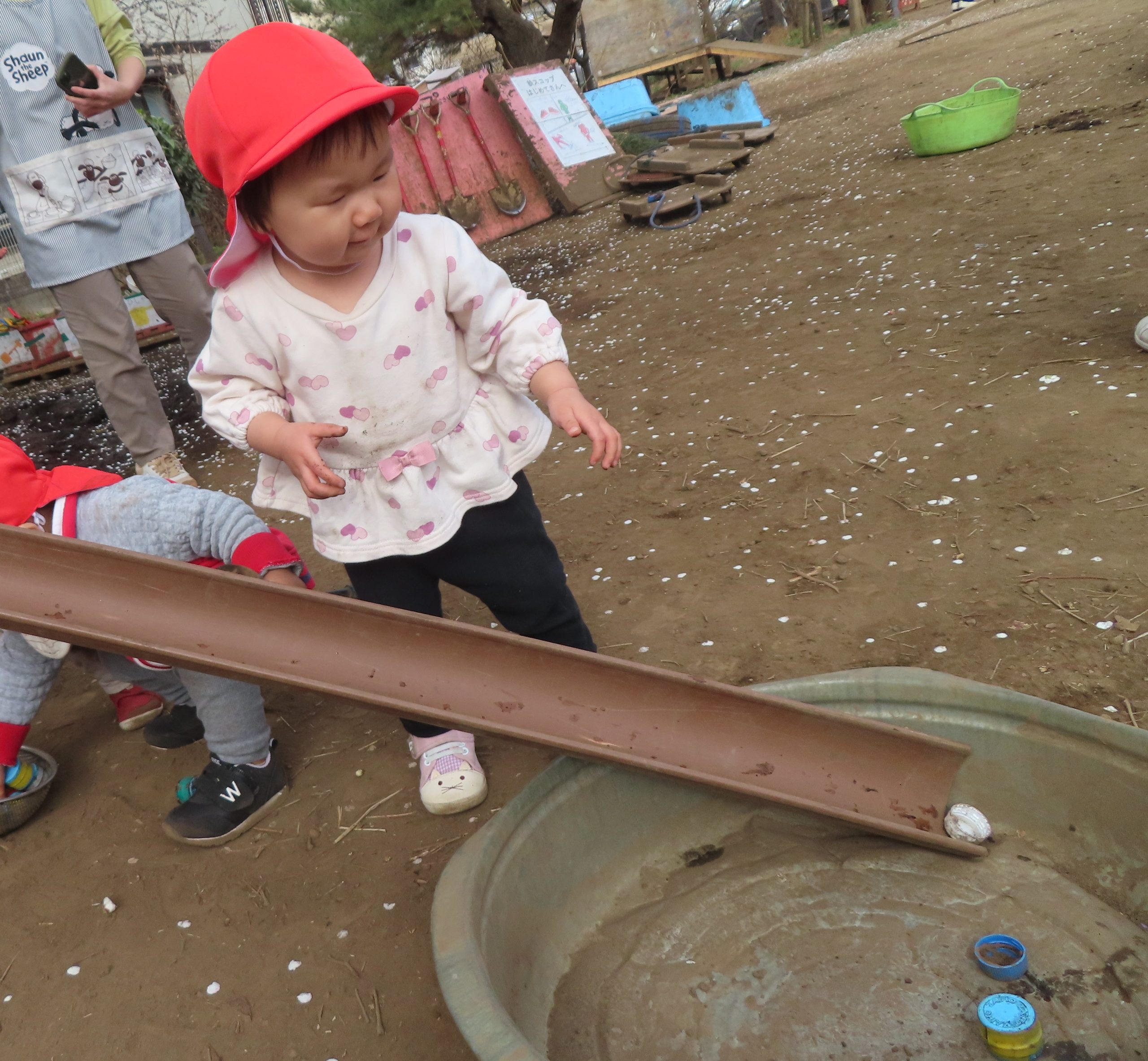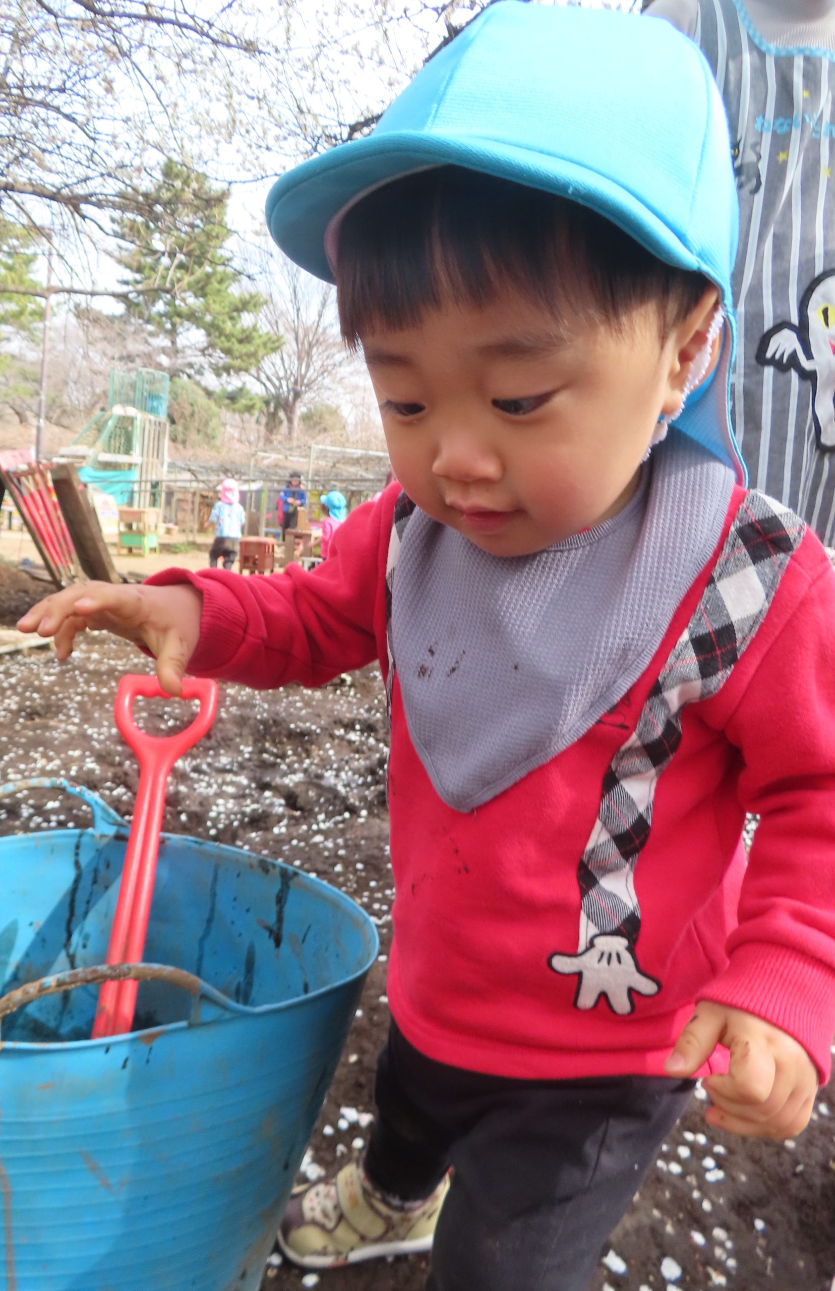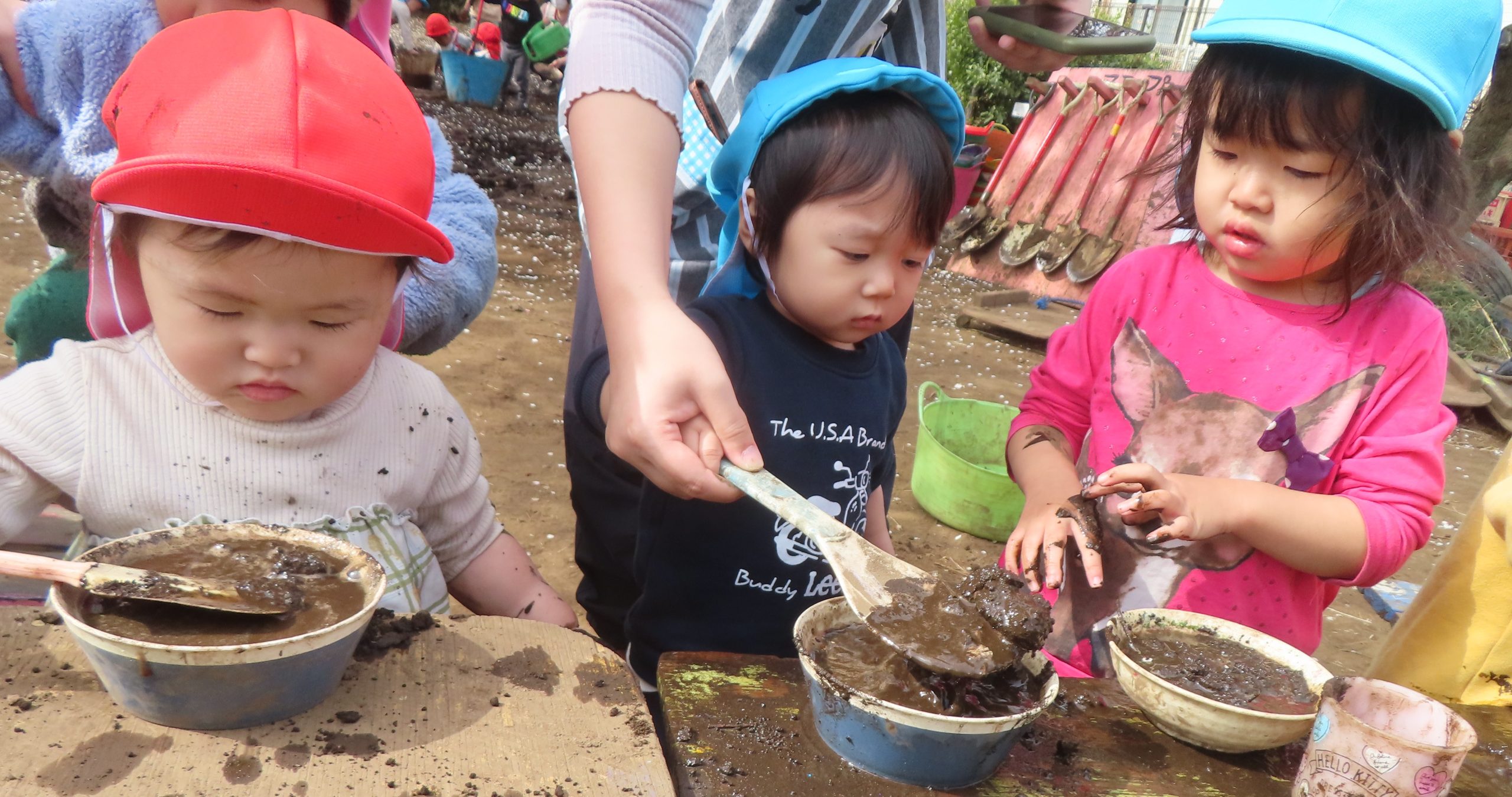 保育者も一緒にシャベルで泥を掘っていると「いっしょだね!!」と嬉しい声が聞こえてきました✨