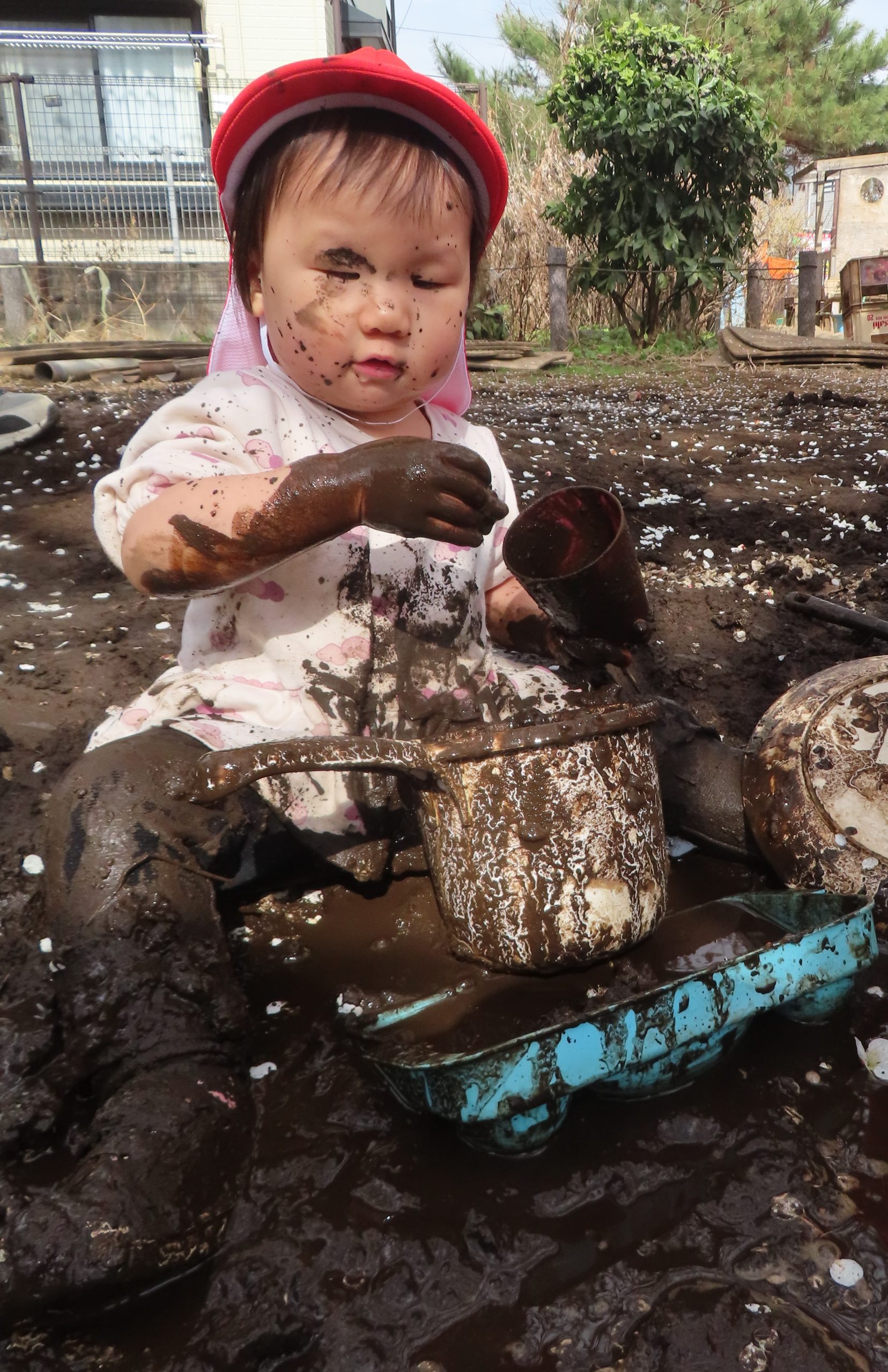 徐々に遊び方が豪快に!ほとんどの子が泥だらけです😲