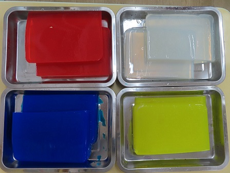 赤・白・黄・青の寒天を用意しました。最初に見た時の子どもたち表情は、「なにこれ…」と驚いた感じでした!