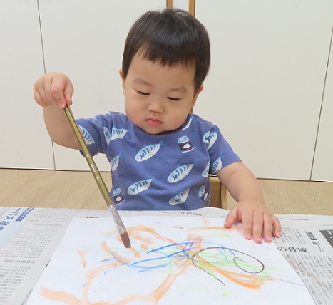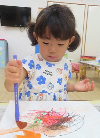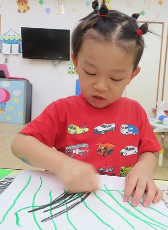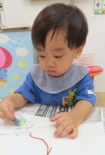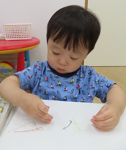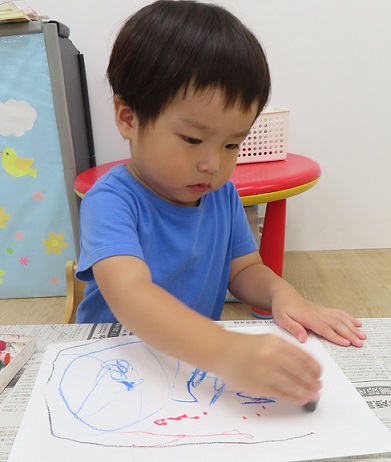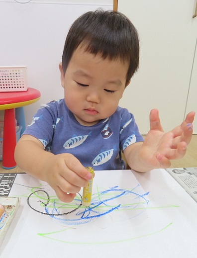 クレヨンで自由にお絵描き🖍線も力強くとても上手です✨