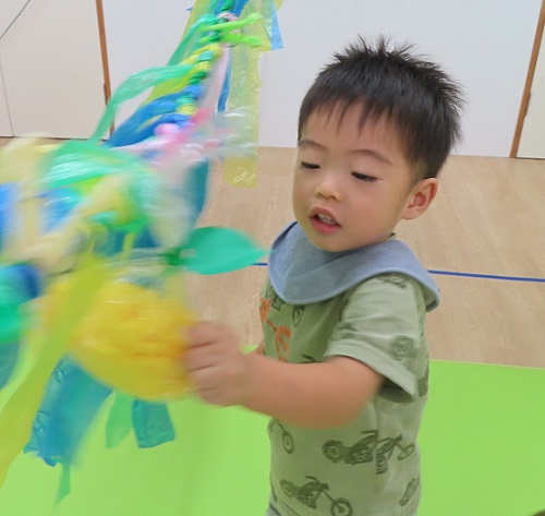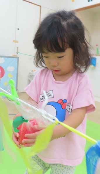 腕・頭に春雨を乗せる子も・・・夢中で遊んでいました。