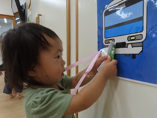 普段、お父様お母様が改札にICカードをタッチしている姿をよく見ているようでタッチが上手でした。それぞれ好きな乗り物があり、「ピッ」と言いながらタッチしていて反応が可愛かったです🚃「しんかんせんある~!ひこうきのる~!」と言って、色んな乗り物にタッチしていた子どもたちでした!