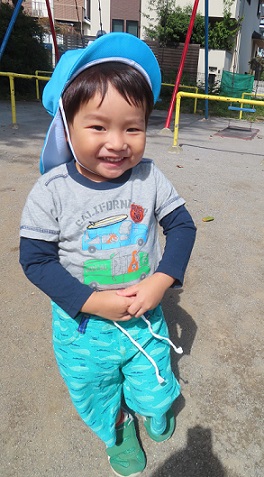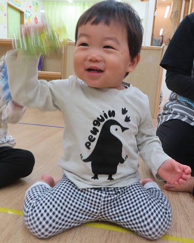 春には、保育者の抱っこや腹ばいで外気欲を楽しんでいた子どもたち。今月からたくさん戸外に出られるようになり、自分で歩いたり、ハイハイしたりと自由に身体を動かして遊んでいました。