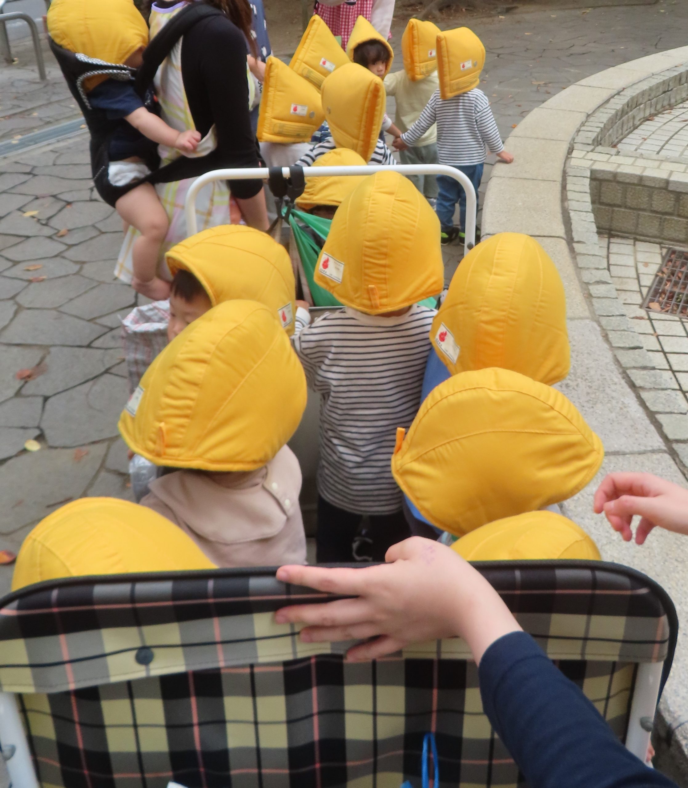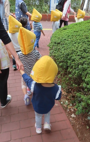 火災の避難訓練では、第一避難所であるみどり公園まで、友だちや保育者としっかりと手を繋いで、避難することが出来ました!