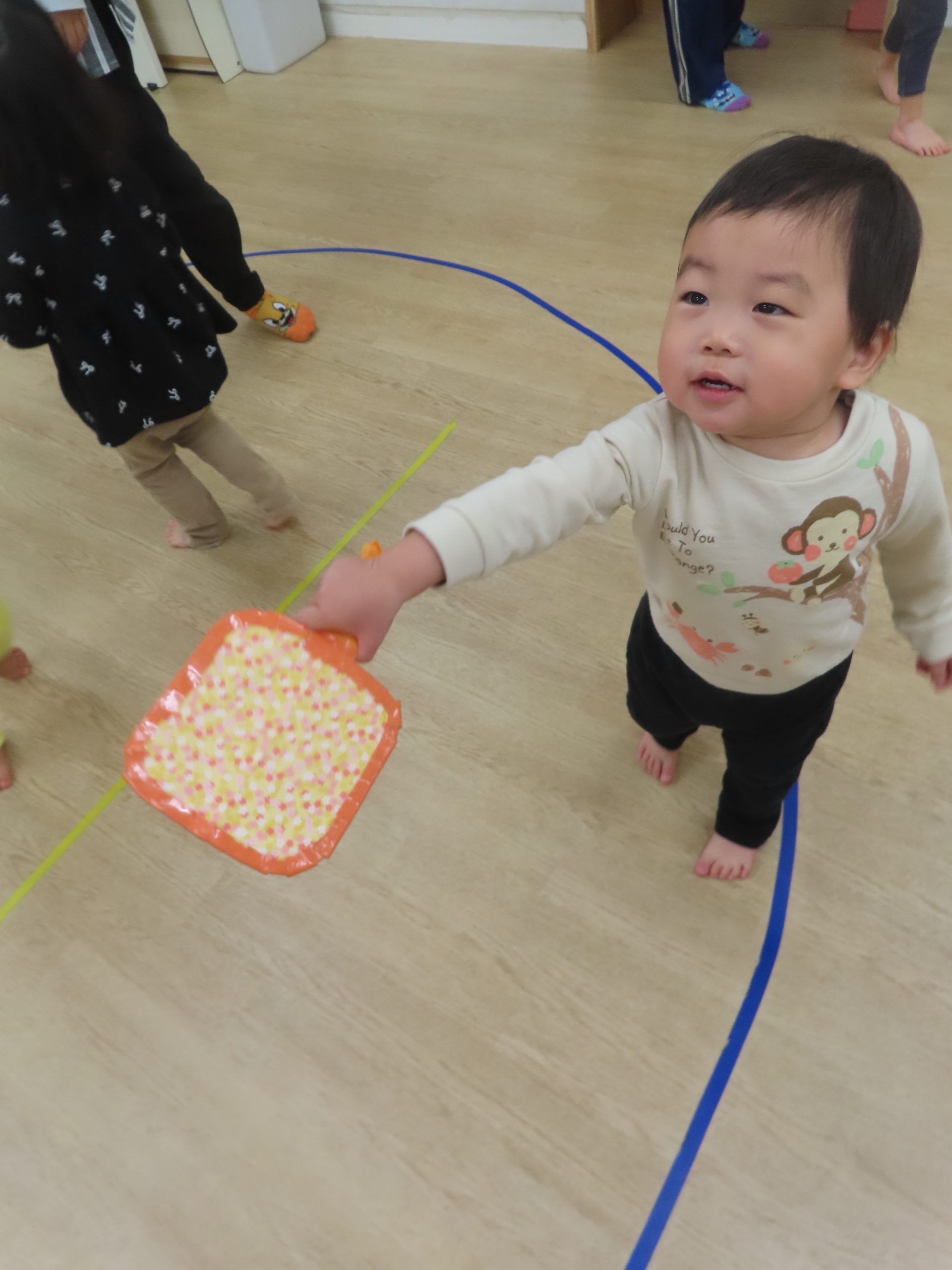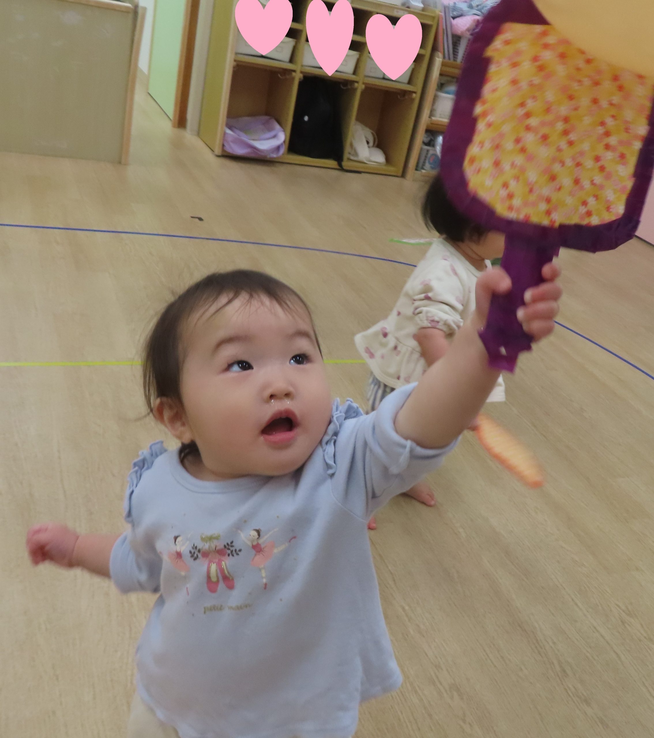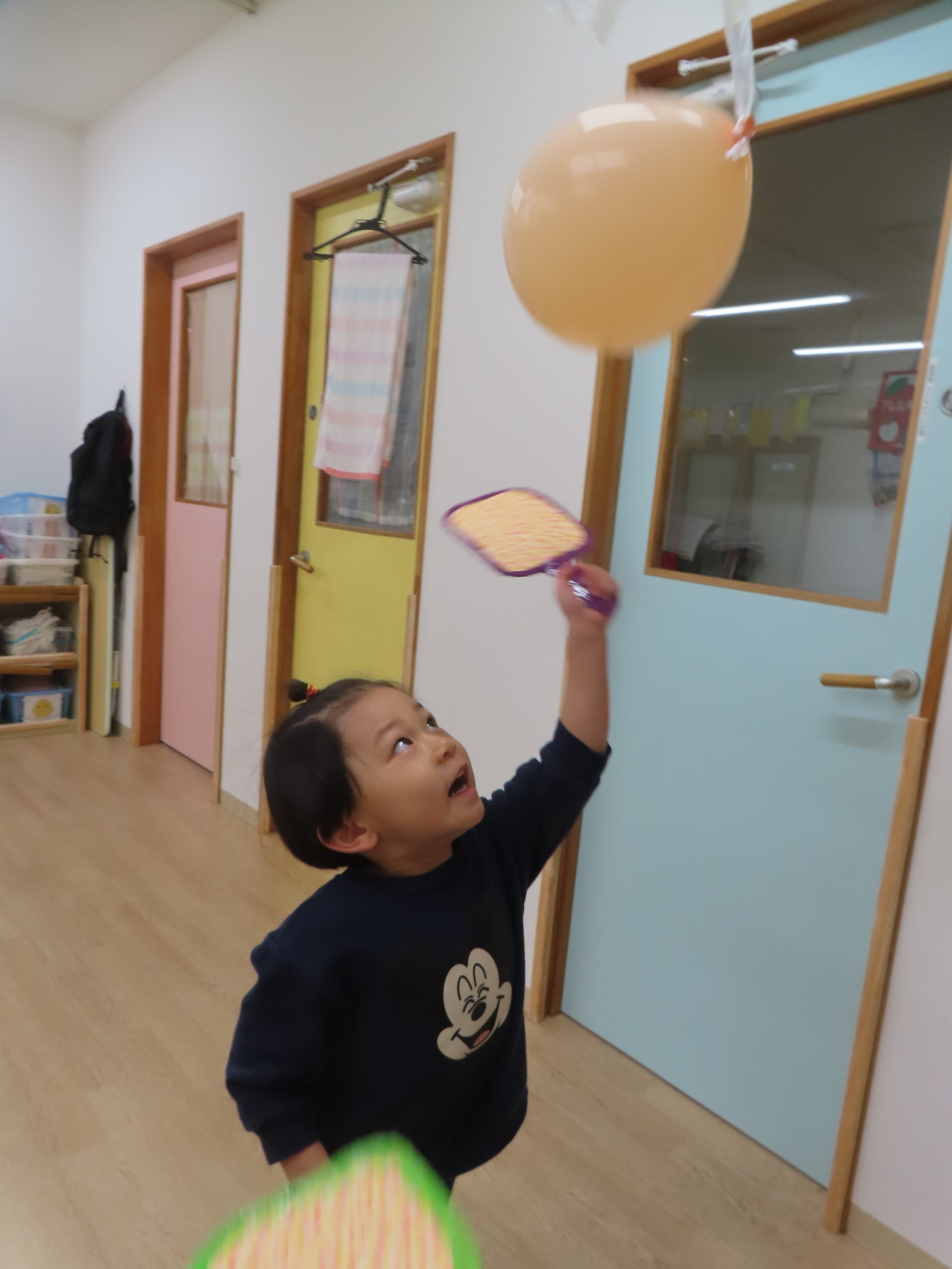 大好きな風船がたくさんぶら下がっていたので、夢中で叩いていた子どもたち。羽子板だけでなく、手や頭で風船に立ち向かう子もいて可愛らしかったです🎈