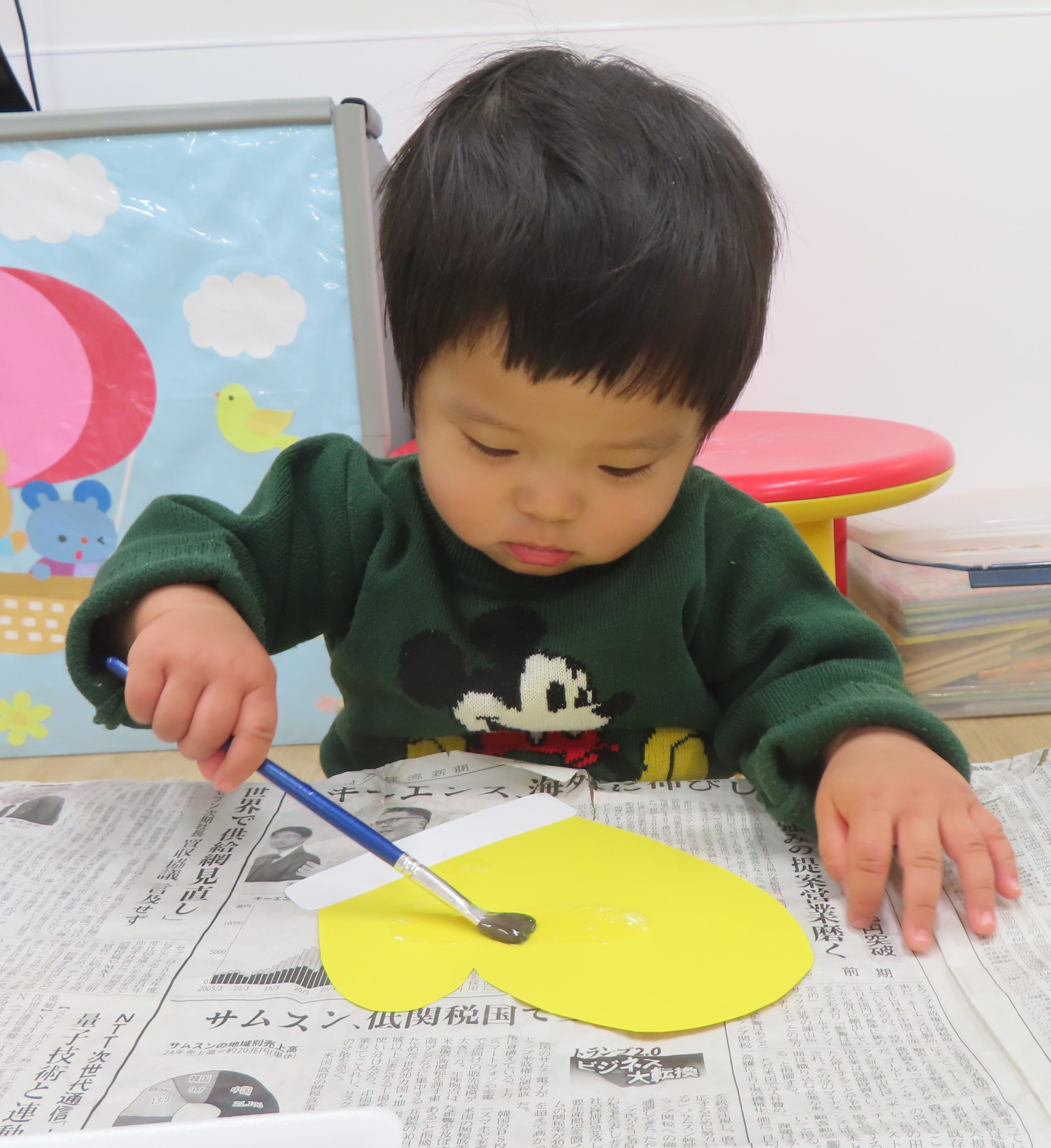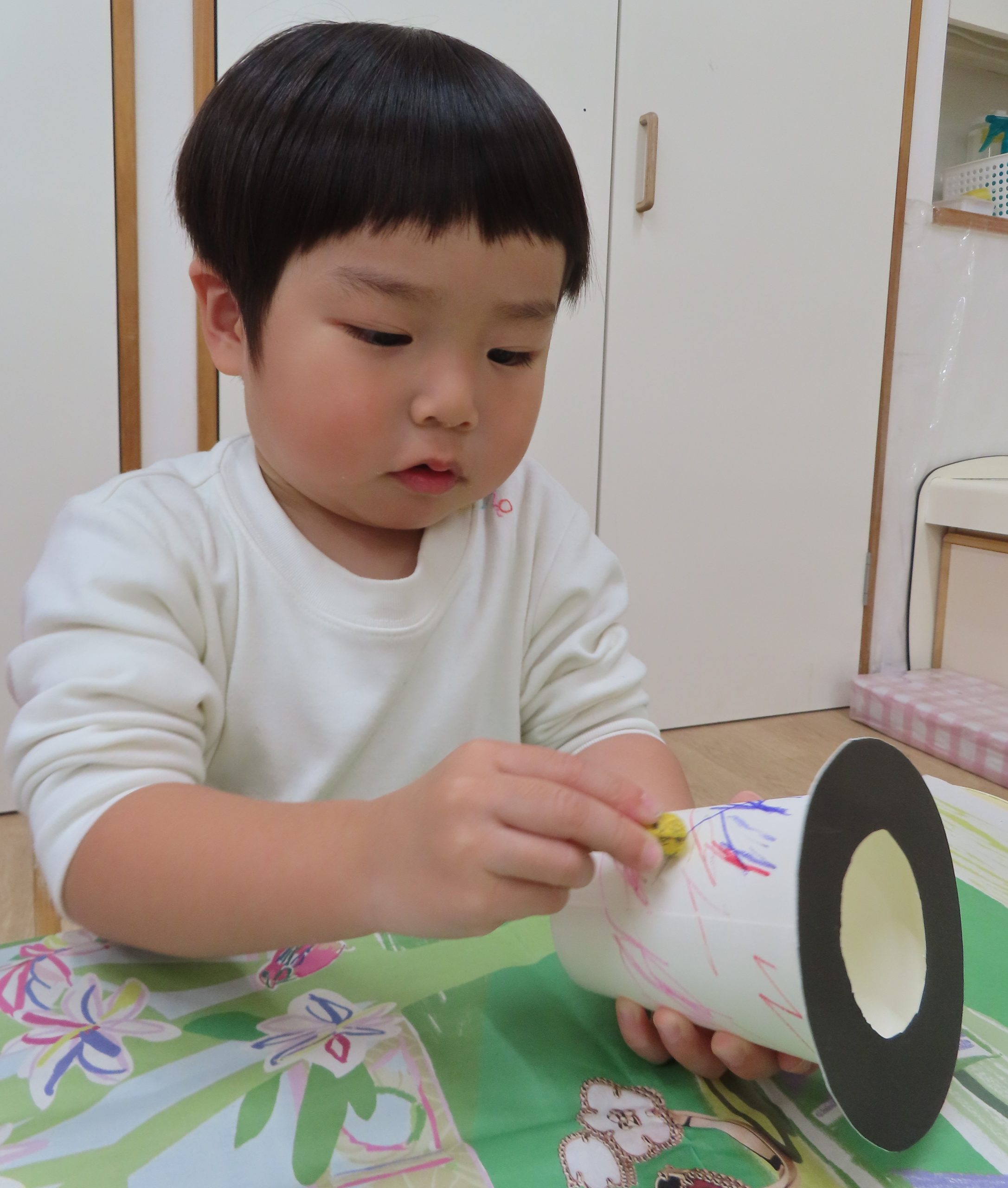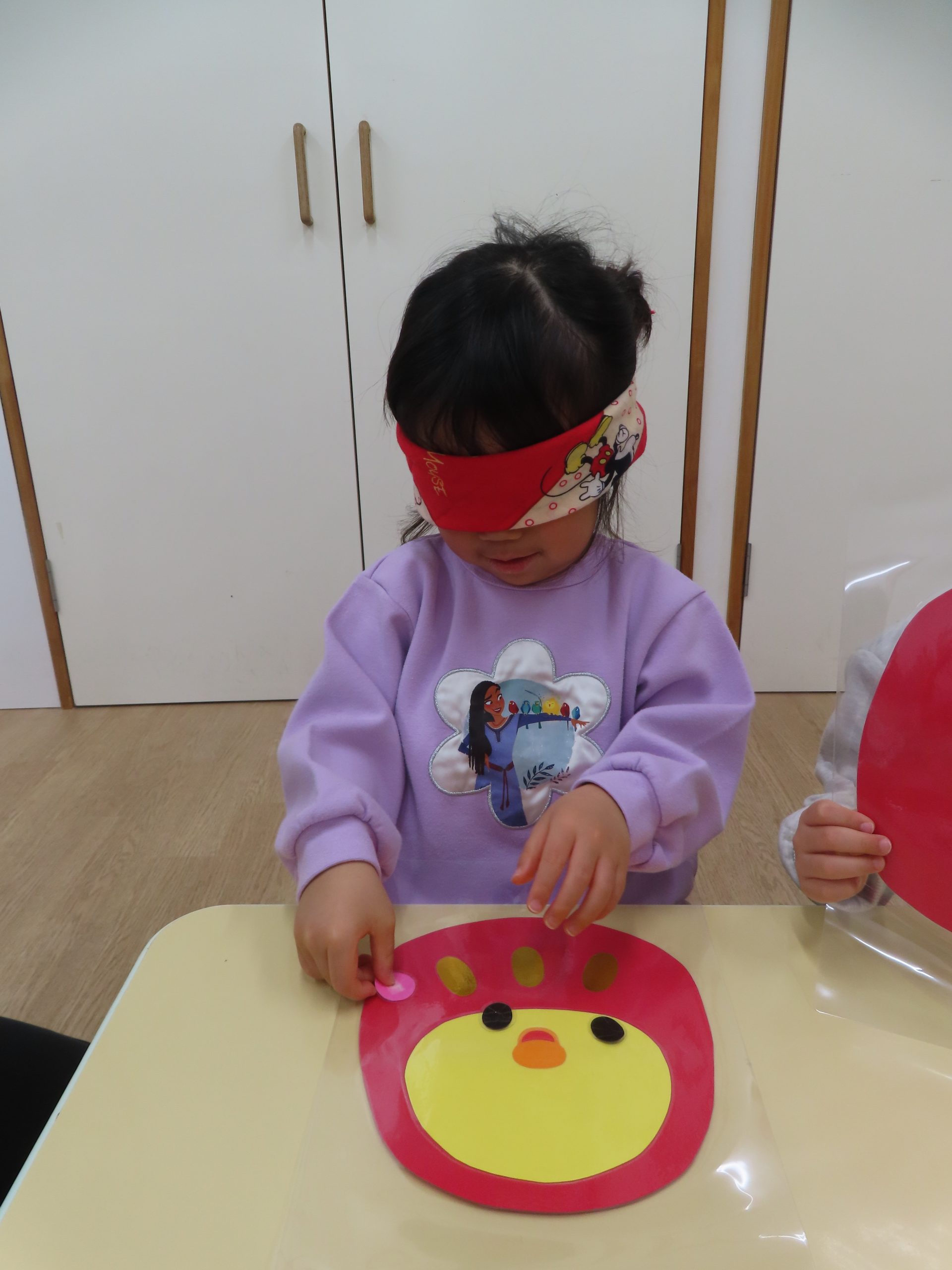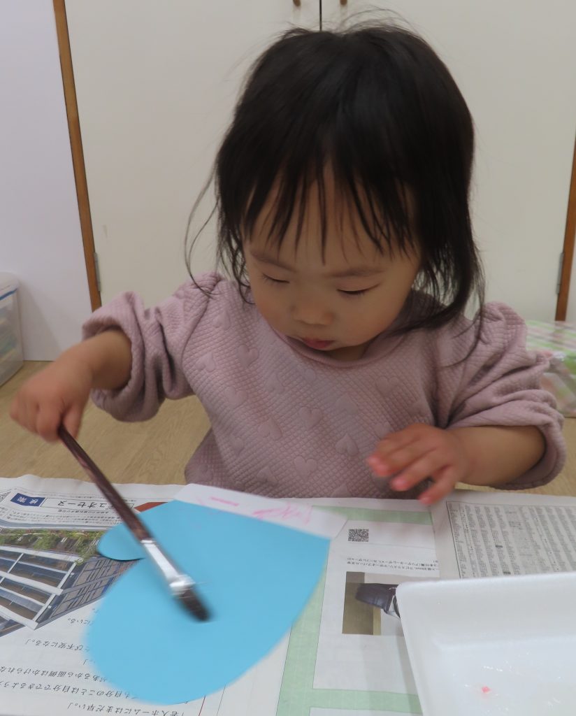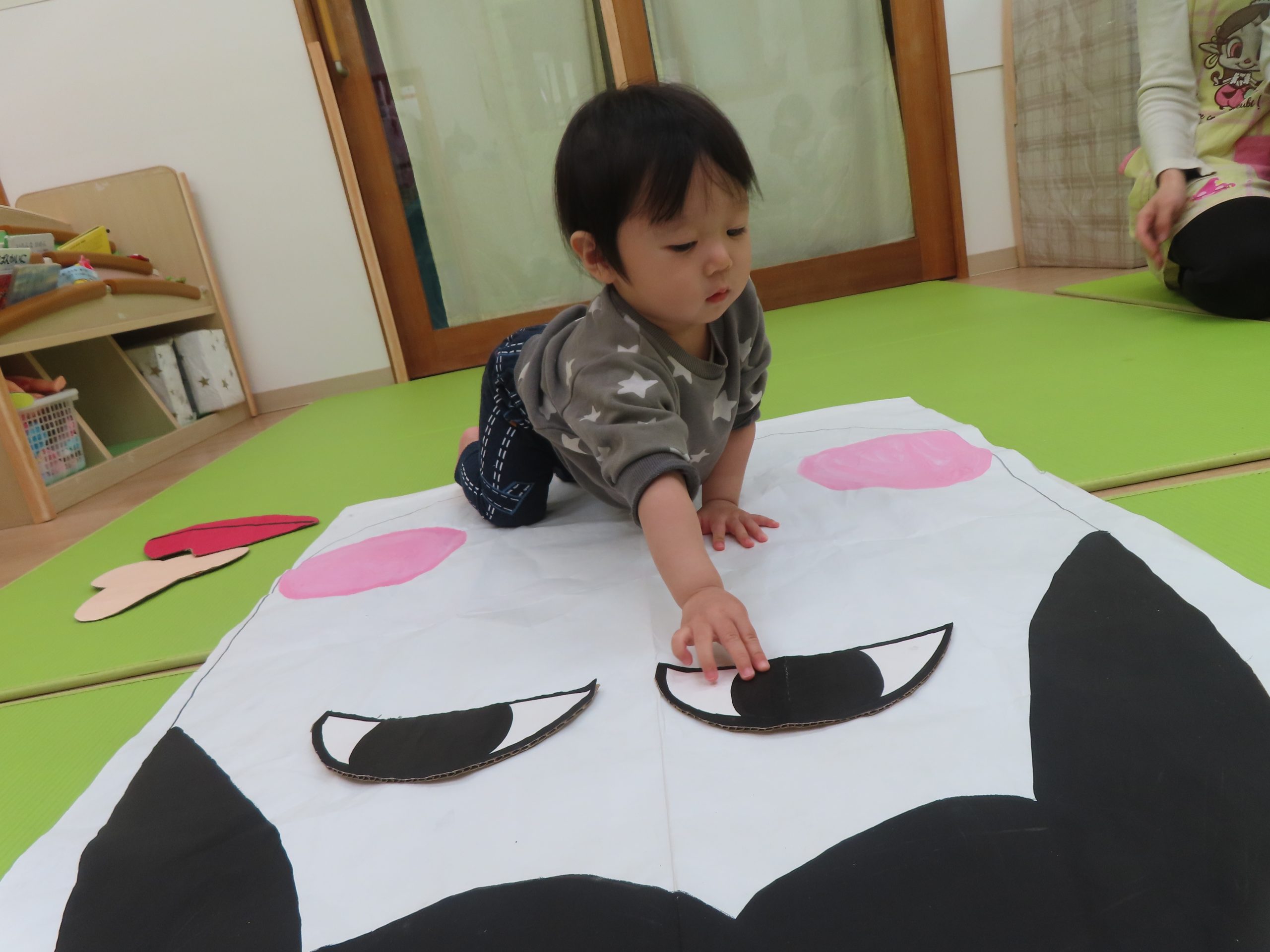 ひよこ組さんの3人が集中して遊んでくれたので驚きました!自分のところに友だちがパーツを貼っても怒ることなく、夢中で見ていました😊