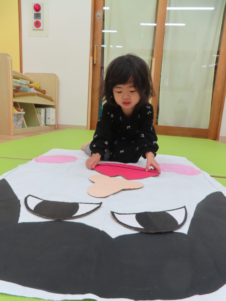 口が目になったり、目がほっぺになったりと面白い顔を作ってくれたので、保育者もたくさん笑わせてもらいました!!