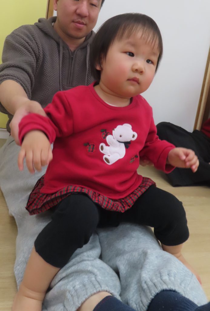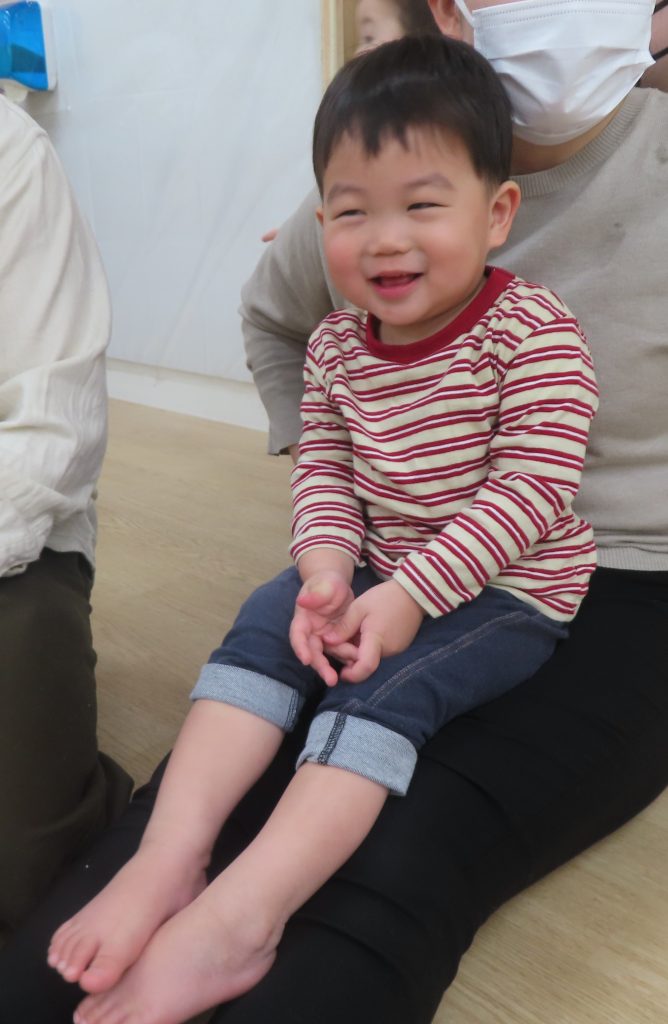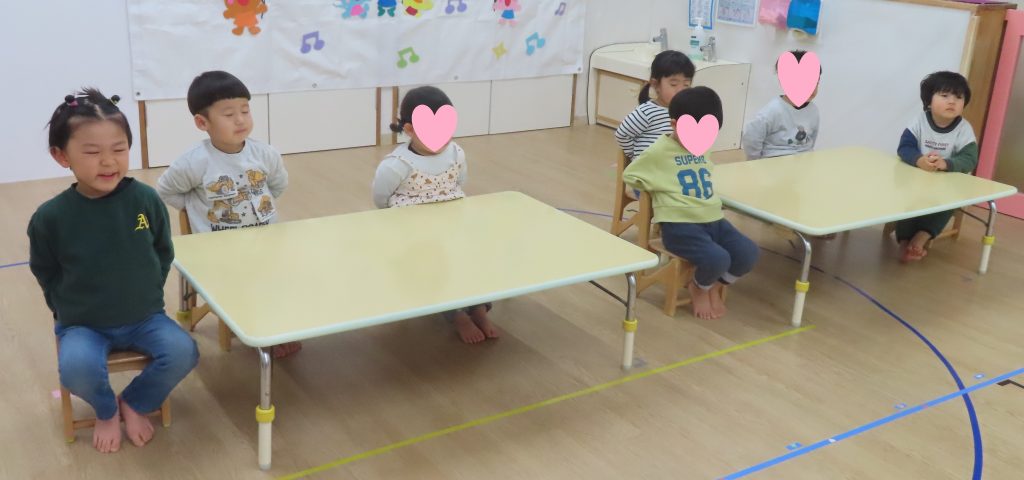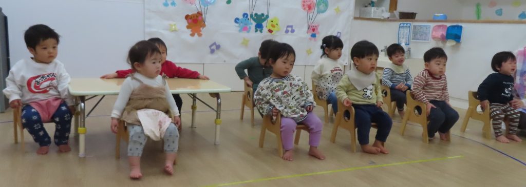 お父様お母様にお顔が見える向きで日課活動を行いました。緊張からかお顔が固まってしまう子も…