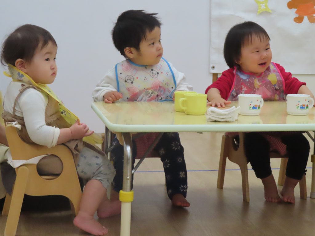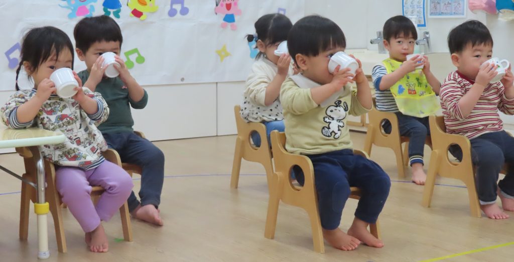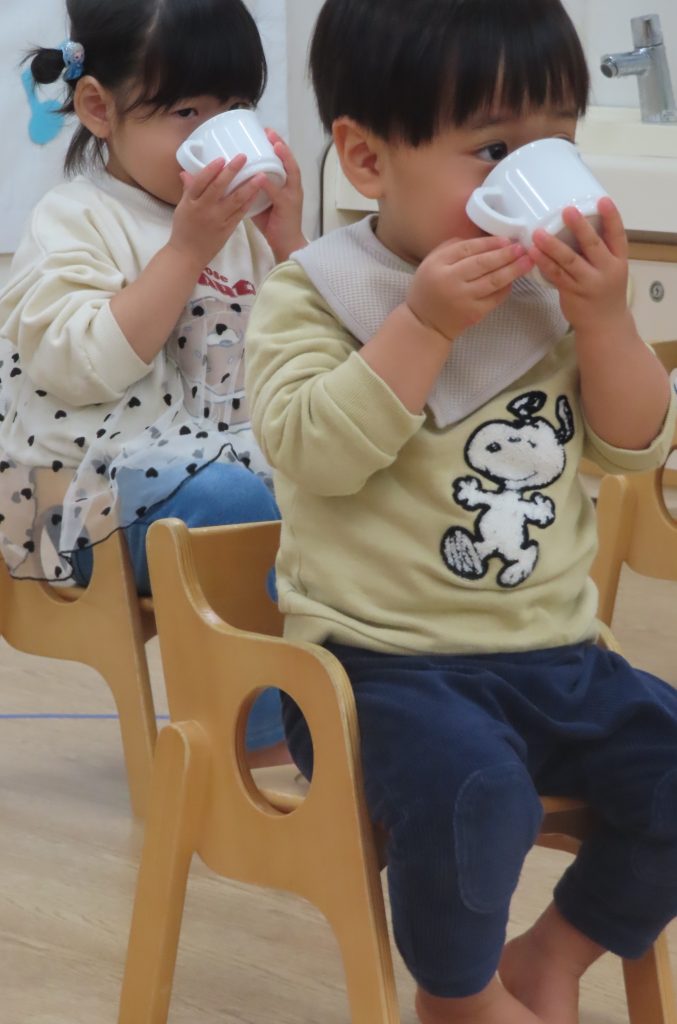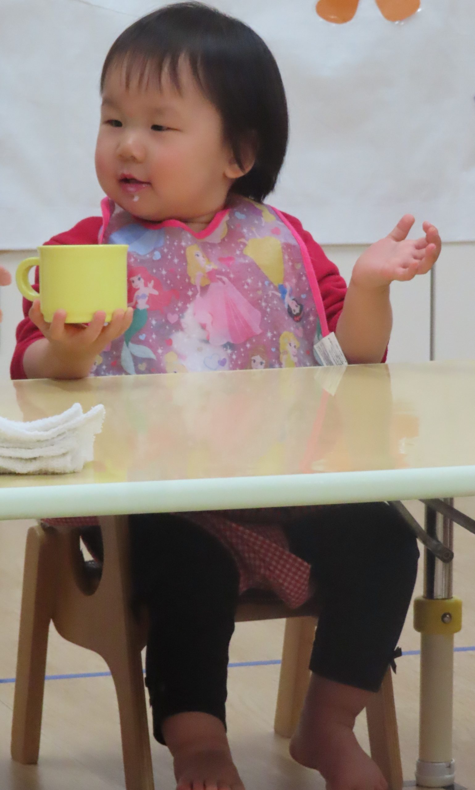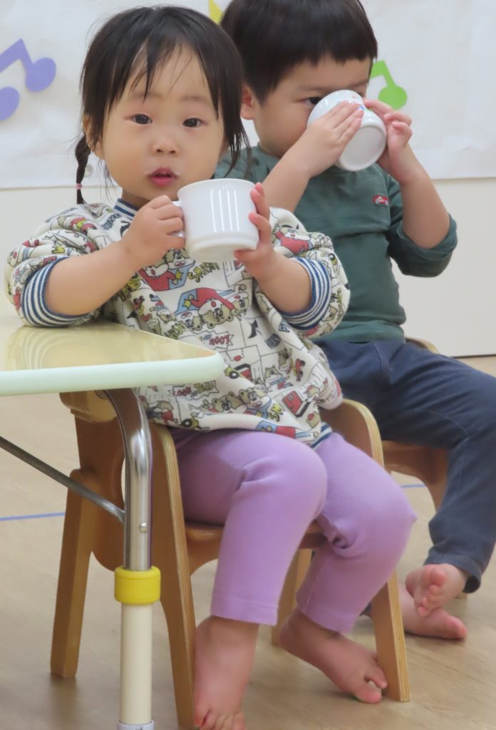 ひよこ組さんも保育者に応援されながら自分で飲むことができました!