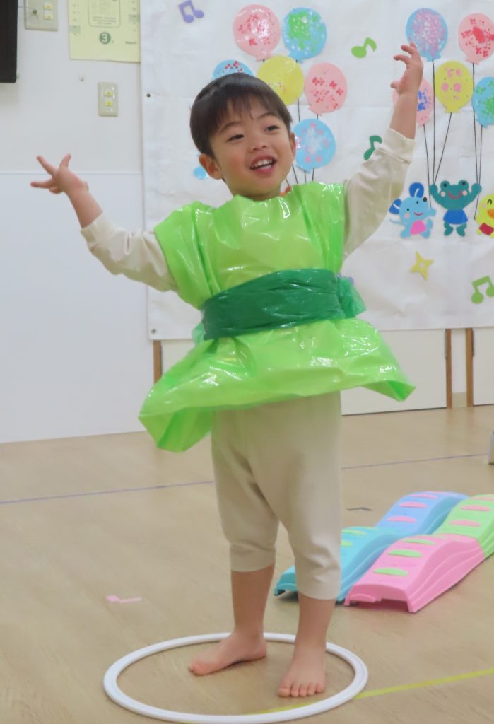 絵本の内容に沿って自分のセリフを言ったり、振り付けを見せたりととても上手でした!