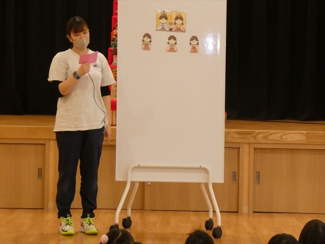 始めにぺープサート『ひなまつりのおはなし』を見ました!
