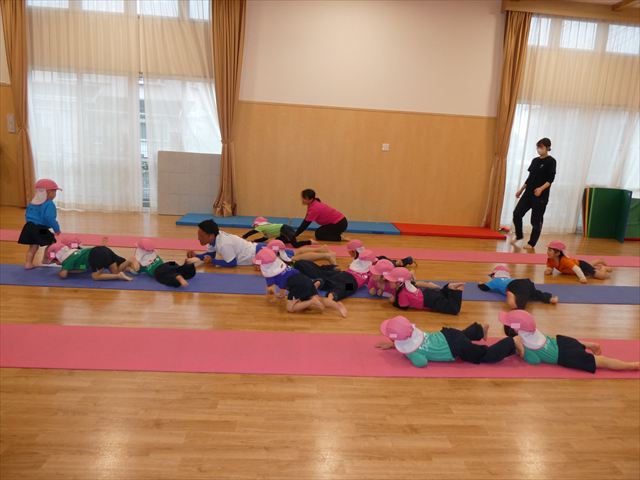 毎週火曜日は、講師の長谷川先生と一緒に行う体操教室を楽しみにしていた子どもたち(^^♪虹組さんは朝練にも意欲的に取り組んできました!!