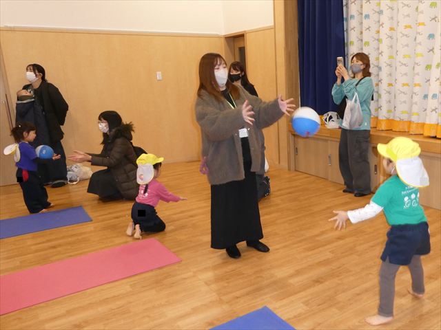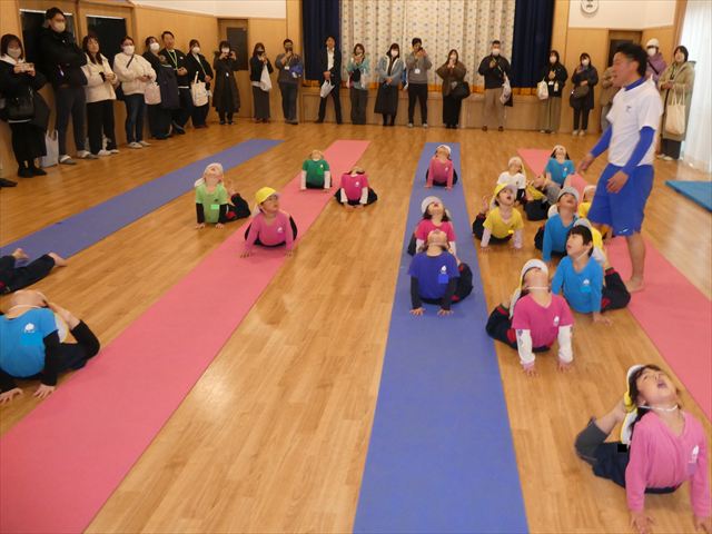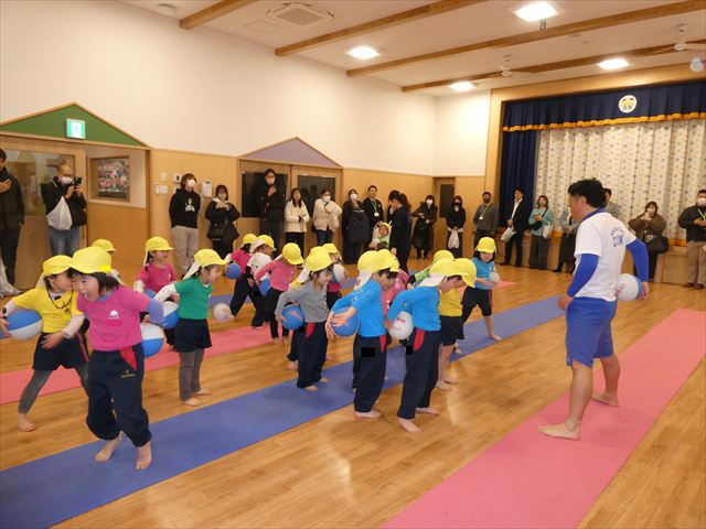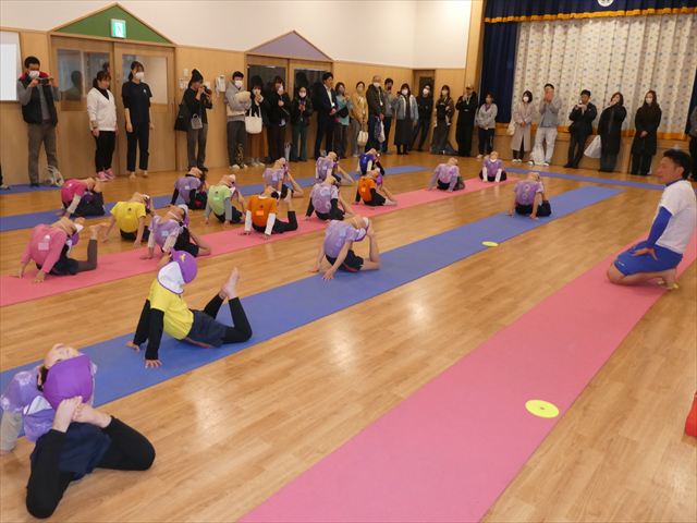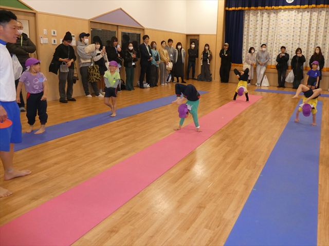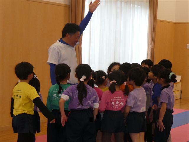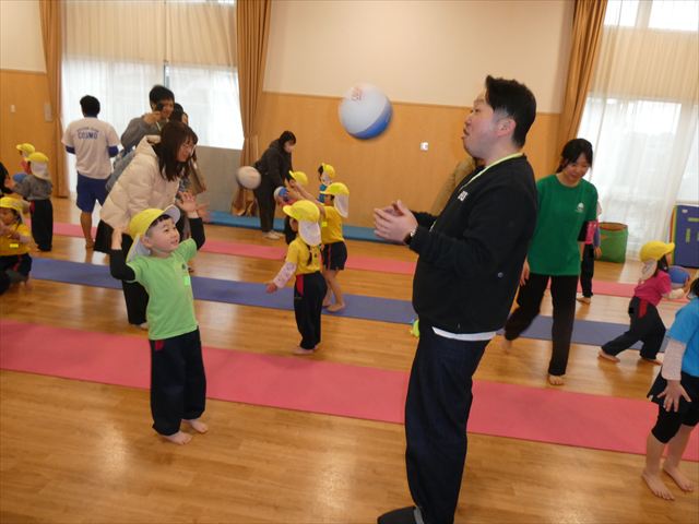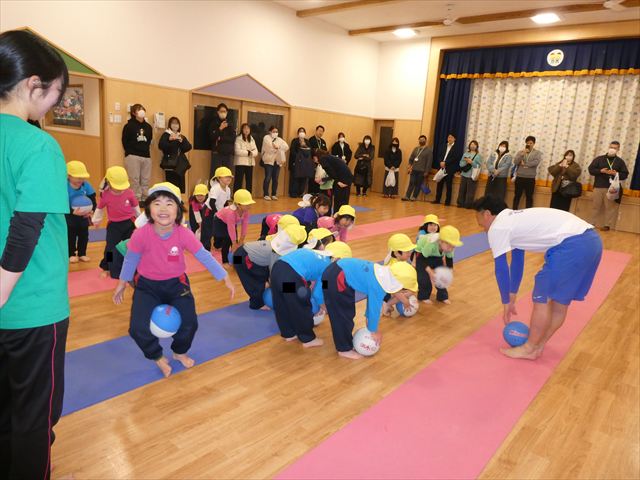 初めての公開保育でしたが、緊張する子もいなく普段通りに楽しむ姿が見られました!!長谷川先生と一緒にたくさん体を動かしたり・・・