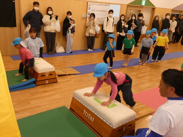 2歳児3歳児4歳児5歳児コスモ久喜きららの杜保育園久喜市体操教室保育園公開保育幼児活動研究会親子ふれあい開脚飛び
