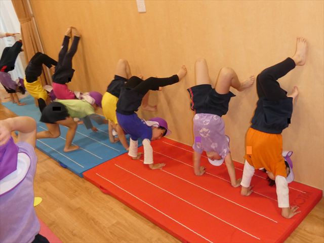 倒立や壁倒立をしたり・・・
