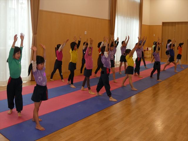 まずはウォーミングアップで体を動かします。