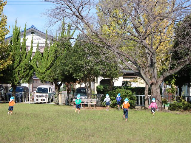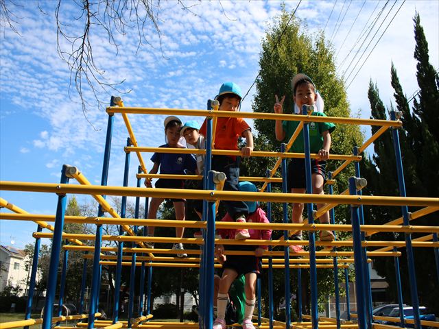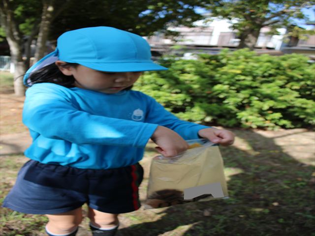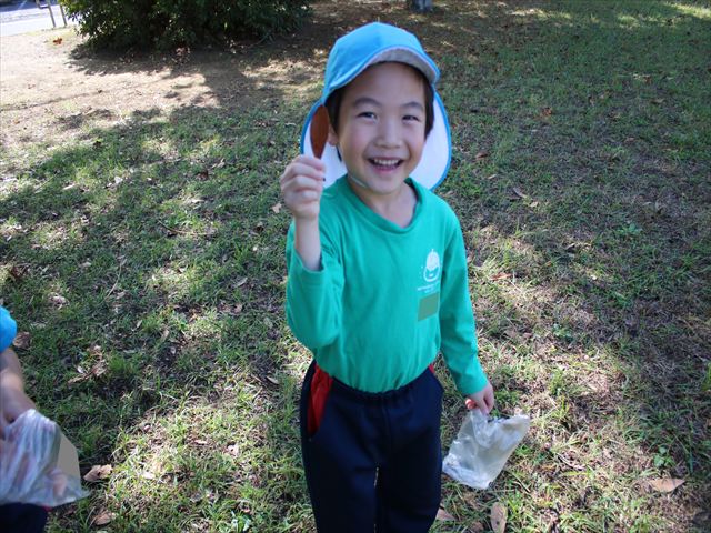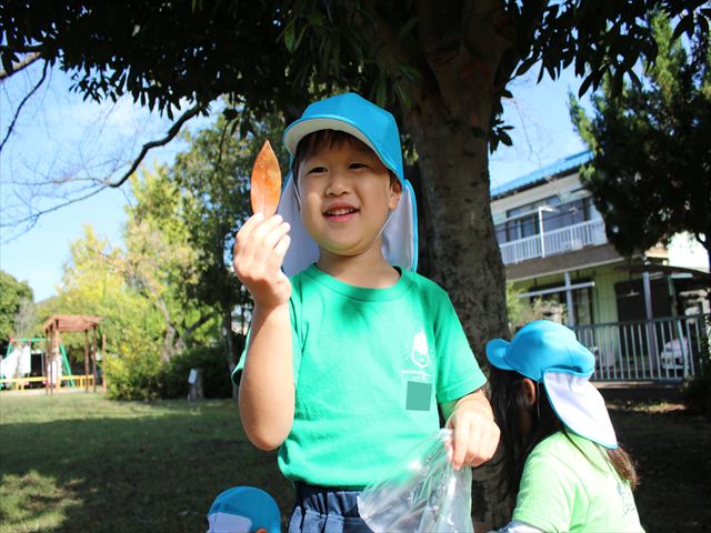 先日、製作で使うための落ち葉拾いに川原児童公園へ行きました。銀杏や桜、沢山の形の葉を見つけ、大きさを比べたり、色の違いの話しをしたりと、会話を楽しみながら夢中で落ち葉拾いをしていました。拾い終わった後は好きな遊具で遊んだり、走り回ったり思い思いに楽しんでいました。