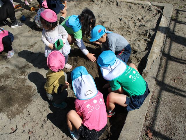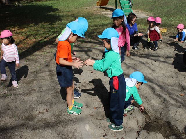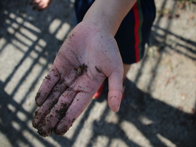 砂の中にいた小さな幼虫を見つけたお友だちも。冬眠の準備中だったかな?
