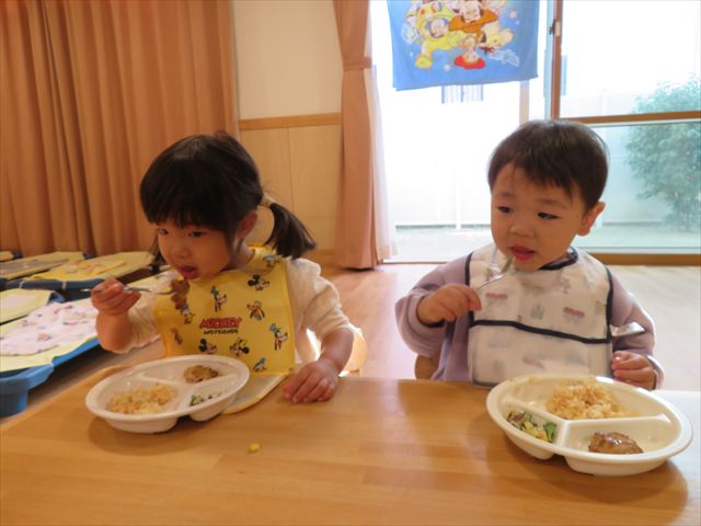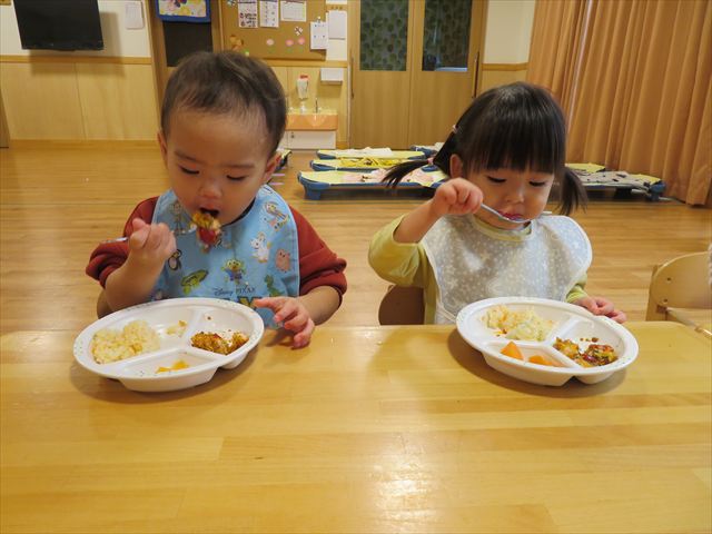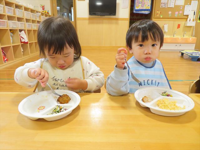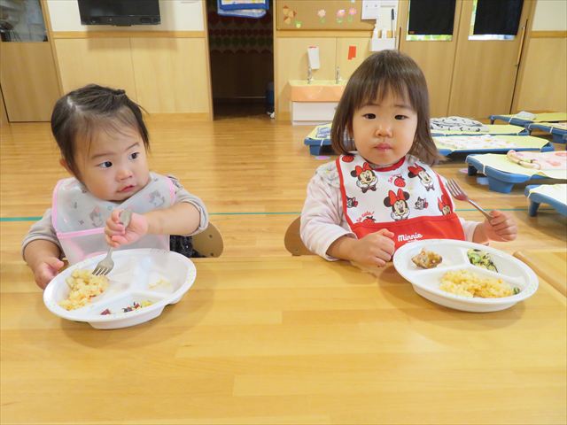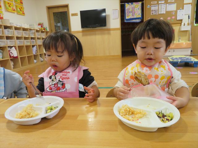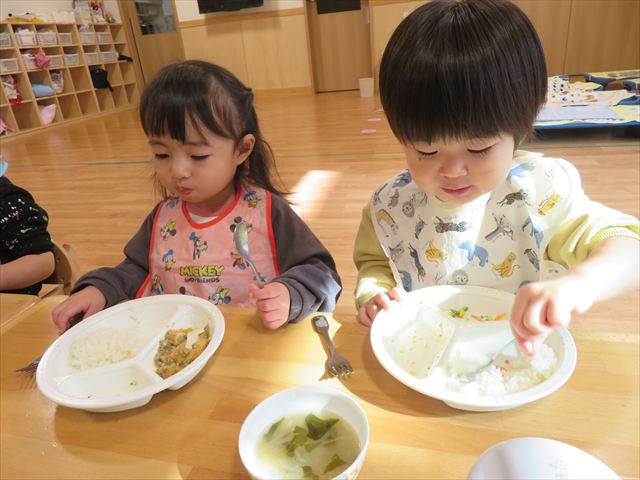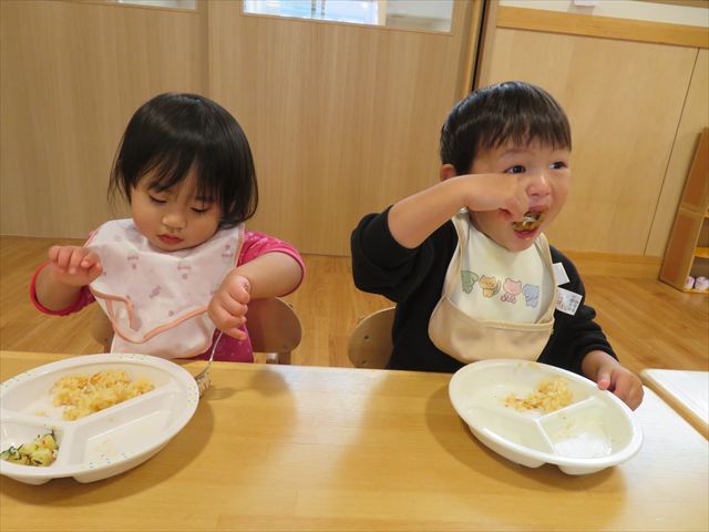 4月にはスプーンやフォークを使うことが苦手だった子ども達も上手にすくって食べる事が出来るようになってきました!