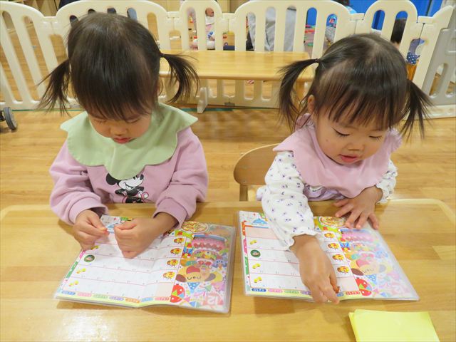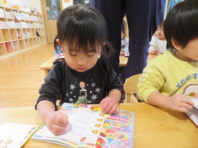 12月に入り、シール帳に日付シールを貼る活動も増えました。