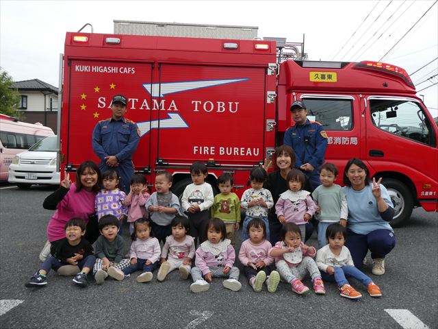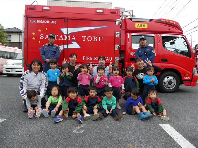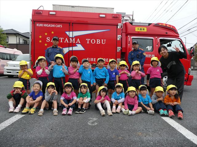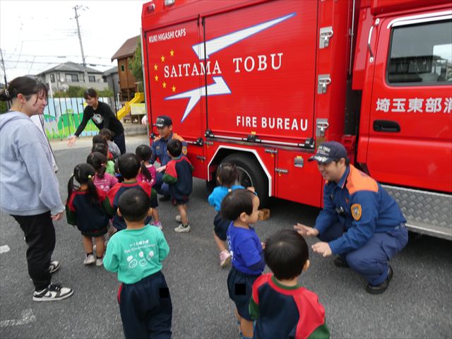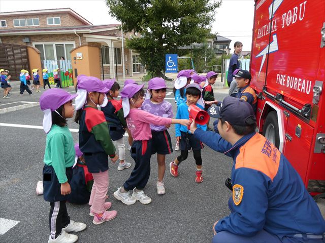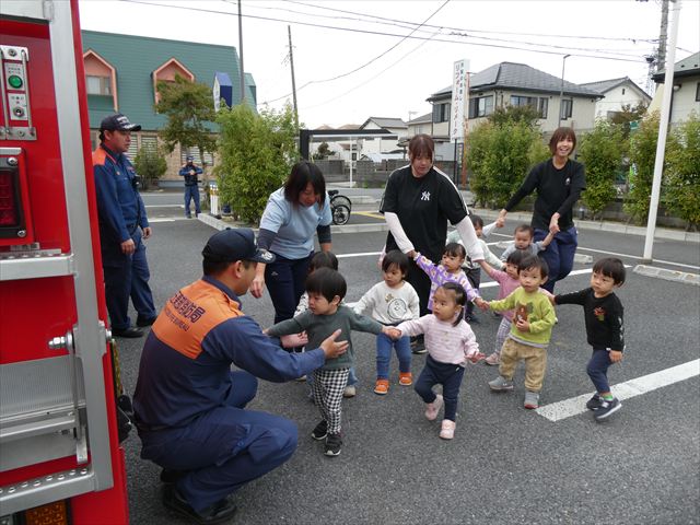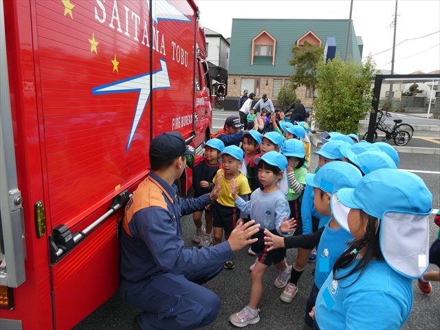 優しい消防士さんとタッチをしてみんな嬉しそうでしたよ(^^♪よい経験になりなしたね!!
