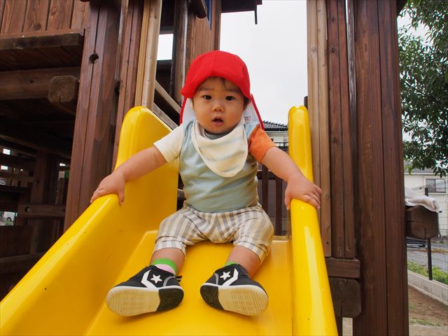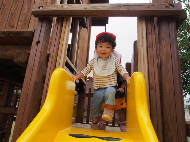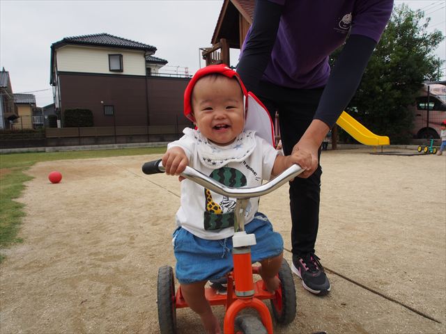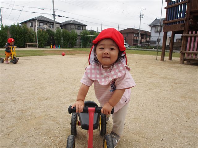 毎日、ぐんぐん成長し、ツリーハウスの段差を登ったり、三輪車に跨がれるようになりました。遊具で遊ぶと普段とは異なる景色が見られるのが楽しいようで、園庭に出ると嬉しそうにニコニコしています。