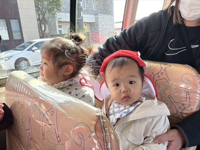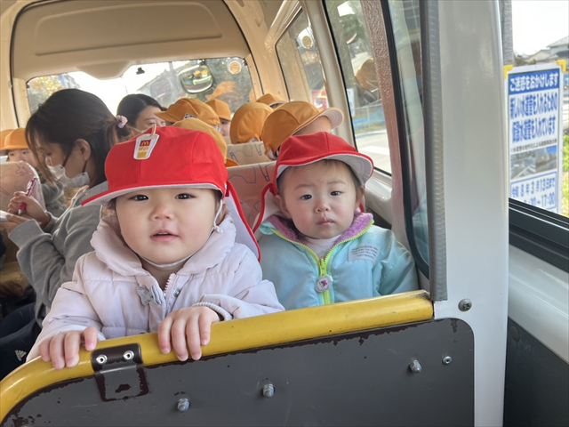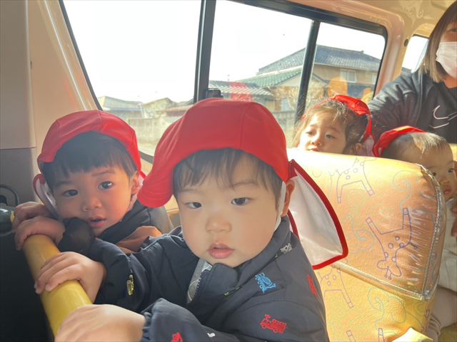花・月・雪組で権現堂公園に遊びに行きました。実は、2月にも同じところへ行ったのですが、その日はあいにくの強風で早めの帰園となってしまったため、今回はリベンジです(笑)うさぎバスにも慣れて、前の手すりにしっかりつかまって乗ることができました。