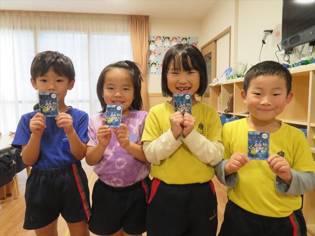 おうちでのミッションにもご協力いただきありがとうございました。休み明けにはクリアした証のキラキラカードをプレゼント!!みんな大喜びでした♪