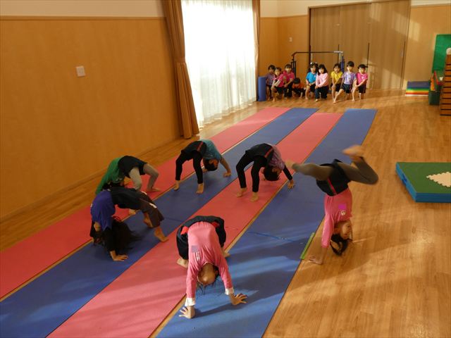 運動会の集団体操発表を終え、体操に自信が付いた子が多くいました。前回りやアザラシ回転、倒立歩行など新しい技も増えましたが、諦めずに何度も挑戦していましたよ!