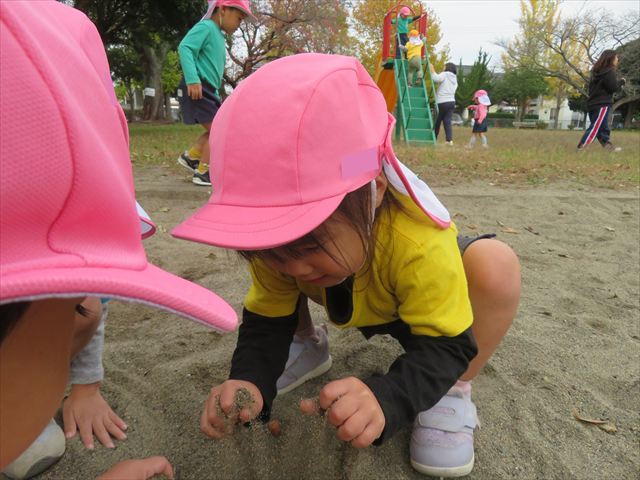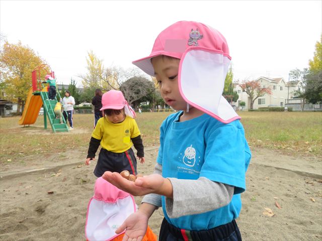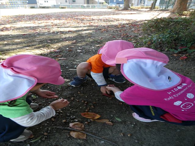 どんぐりを集めたり、落ち葉を拾ったりして秋の自然に触れ、楽しんでいました!