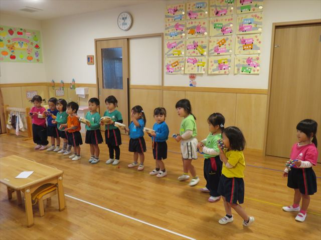 お遊戯、合奏の練習どちらも楽しみながら練習に取り組んでいます☆