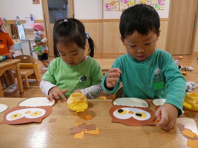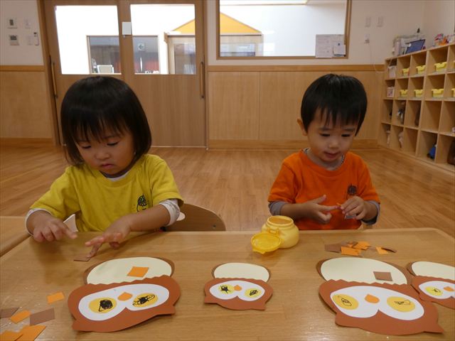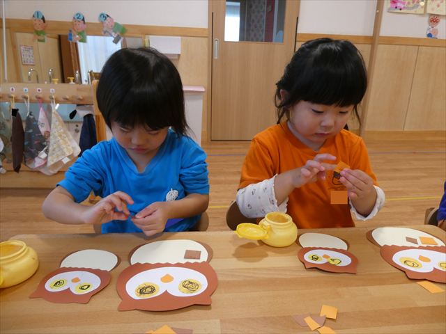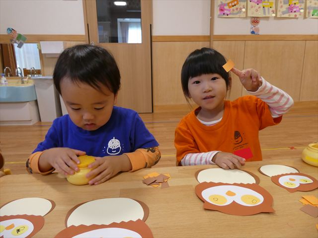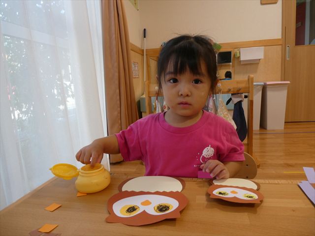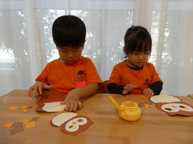 自分で切った画用紙をのりで貼る作業はとっても楽しかったようで、集中して黙々と進めていました^_^