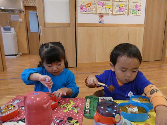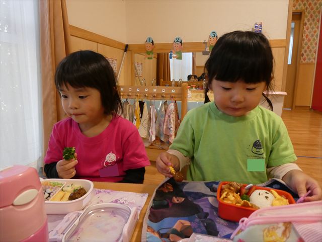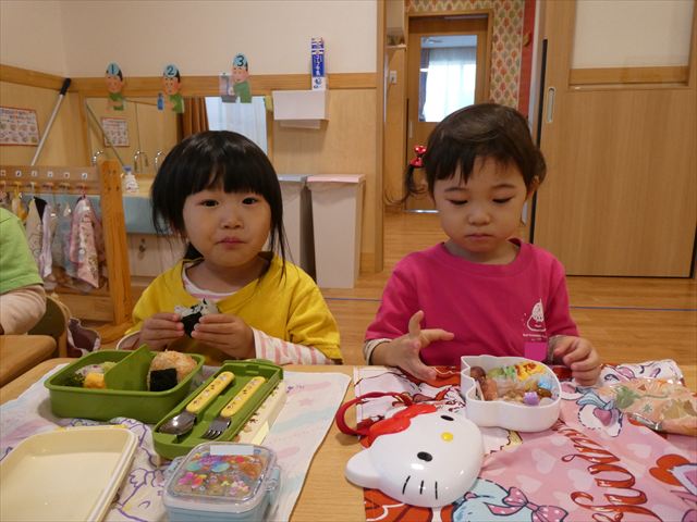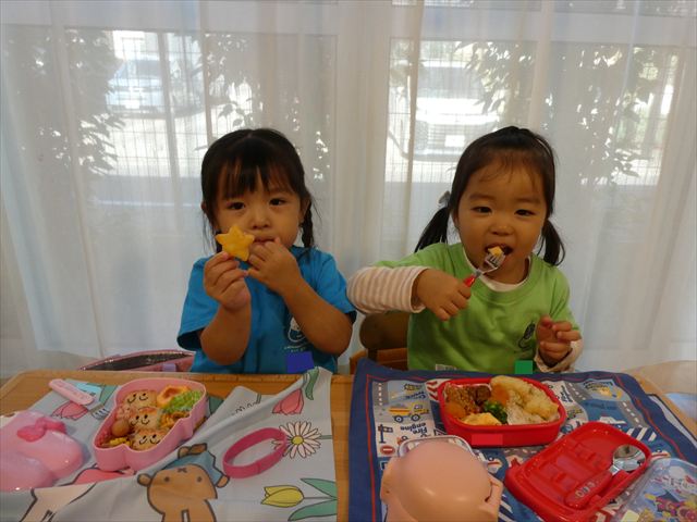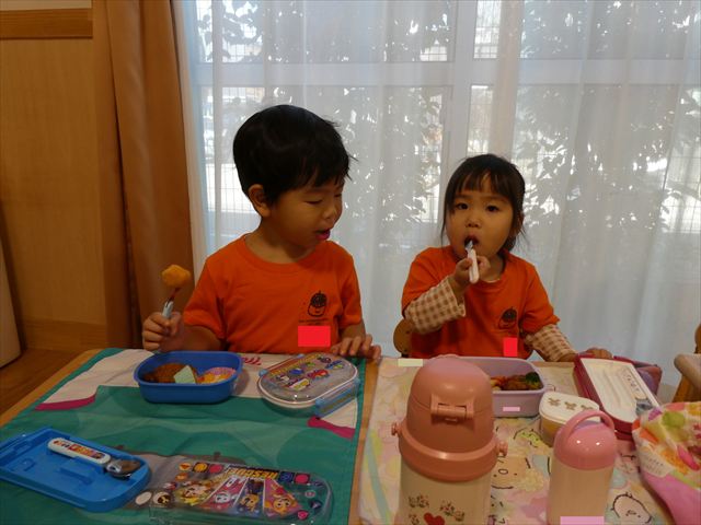 中には、お弁当に夢中で黙々と食べ進めている子もいます(笑)そんなみんながとっても可愛くて癒されています♡