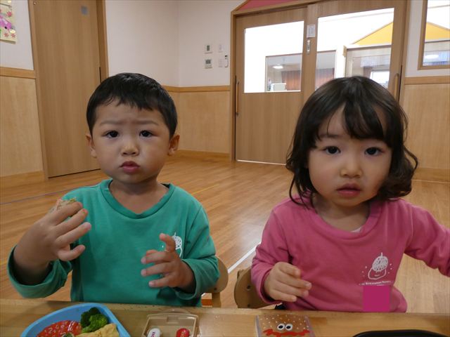 ニコニコ笑顔でお友達と楽しそうにお話しながら、食べていますよ♪^_^