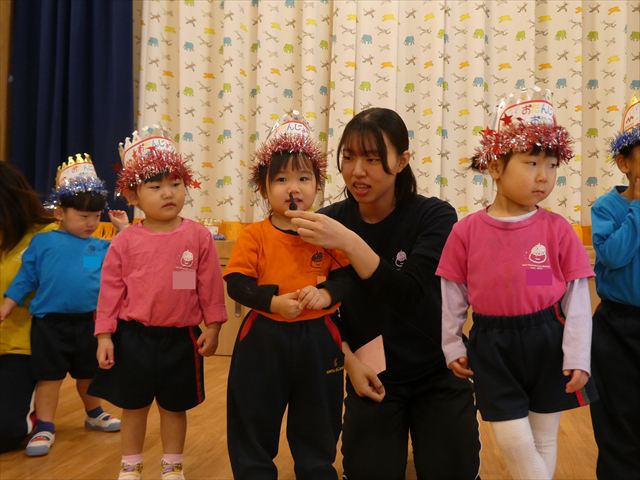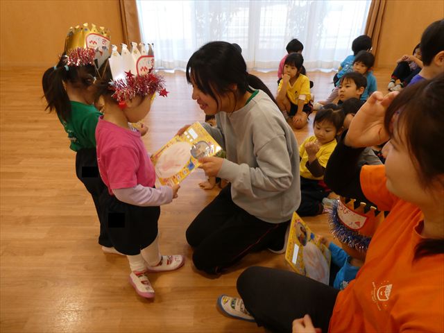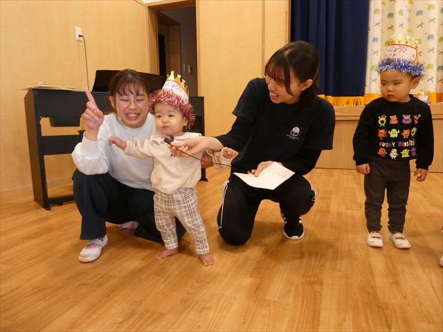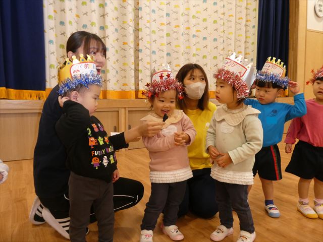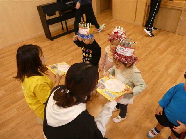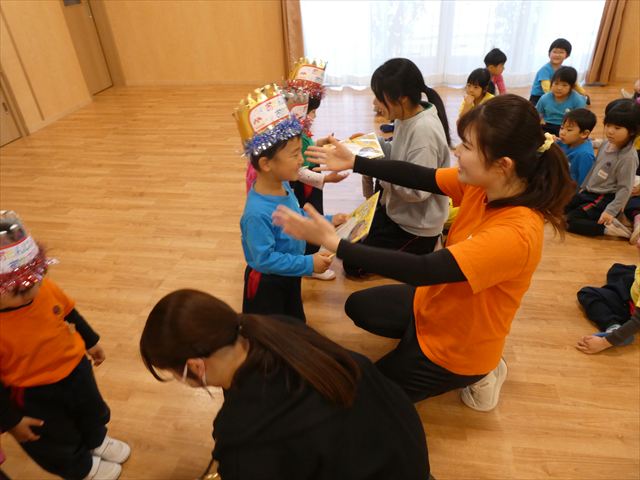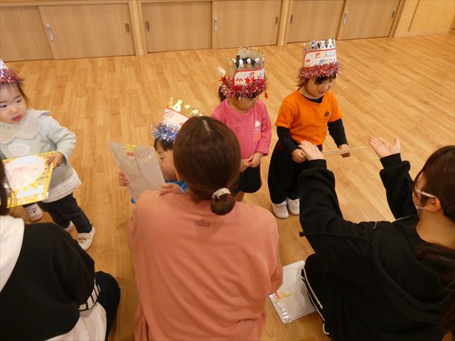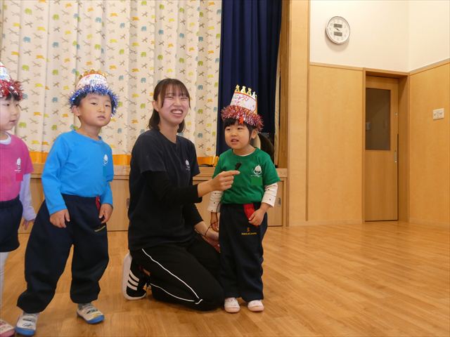 1月30日(金)は1月のお誕生会でした!1月生まれのお友だちは10人(1人お休みでした)、先生は1人でした。12月生まれで先月のお誕生会が欠席だったお友だちも参加しました(^^)