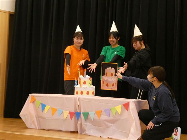 最後に、みんなで「ハッピーバースデー♪」の歌をうたい、ケーキを食べることができました♪