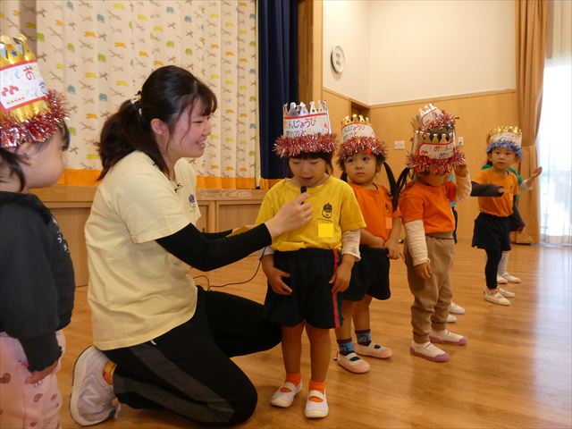 11月28日(金)は11月のお誕生会でした。11月生まれのお友だちは10人(3人お休み)、先生はいませんでした。