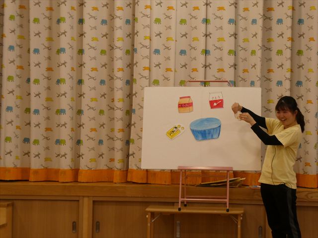 先生からの出し物はパネルシアター『びっくり誕生日ケーキ』でした!!