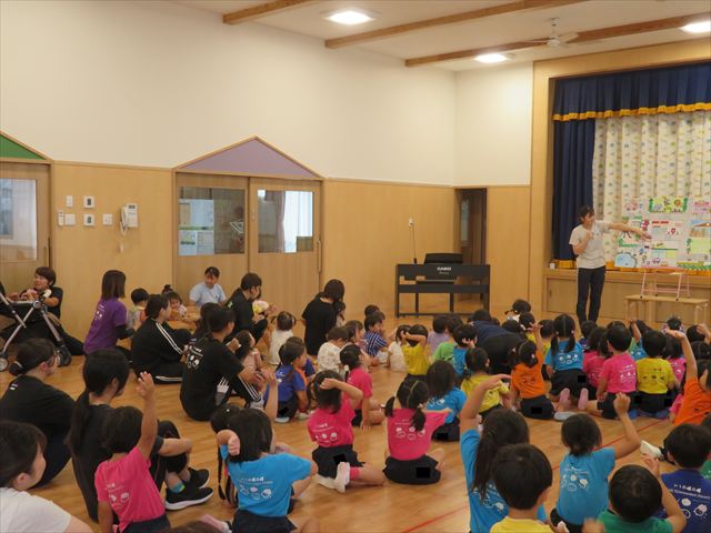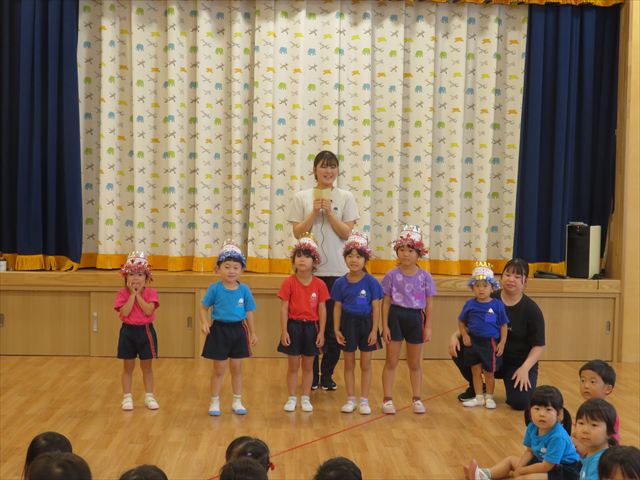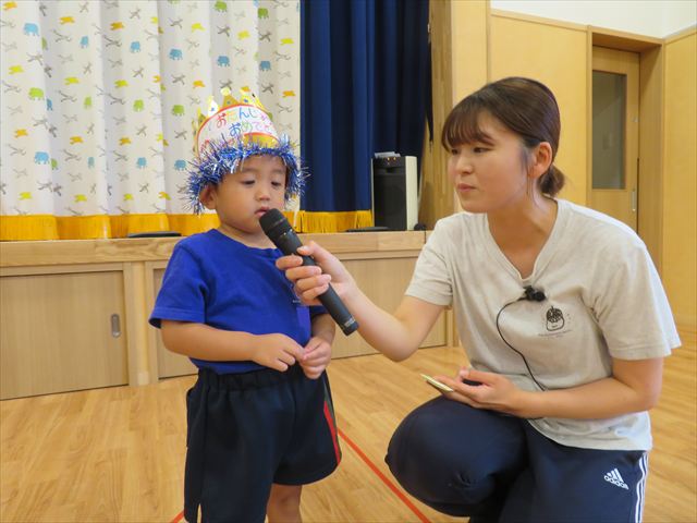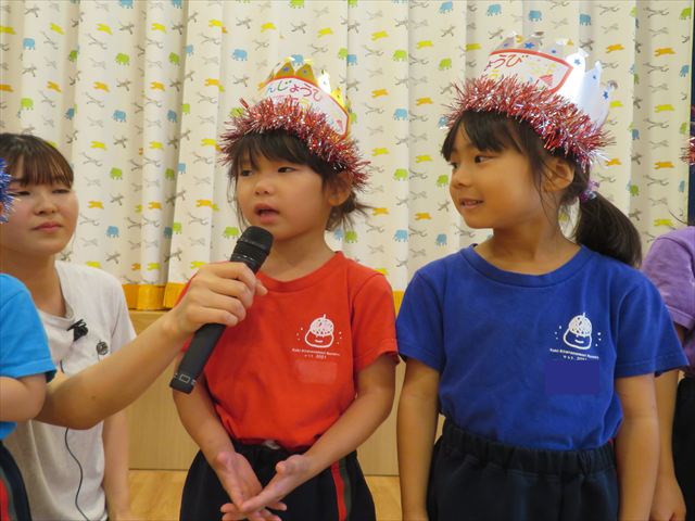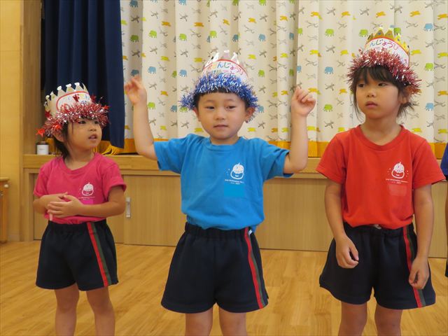 9月29日(月)は9月のお誕生会でした(^-^)9月生まれのお友だちは5人!先生は4人!!遅番担当の先生や給食の先生、そしてなんと園長先生もですよ(^O^)8月生まれで先月のお誕生会が欠席だったお友だちも参加しました!