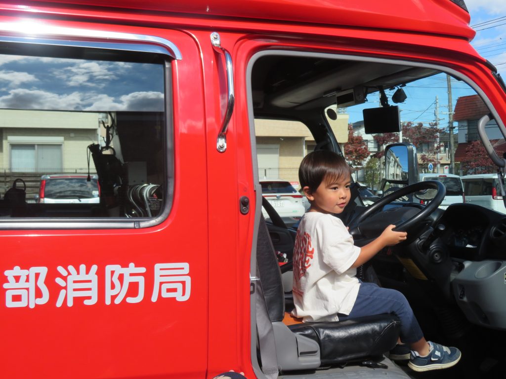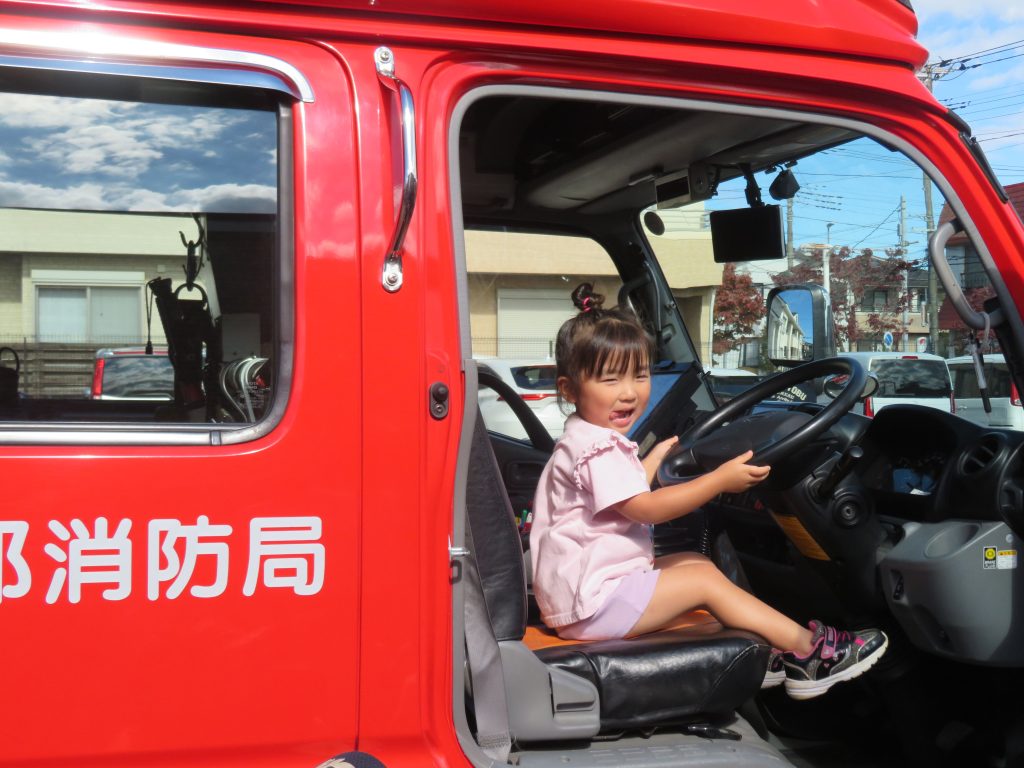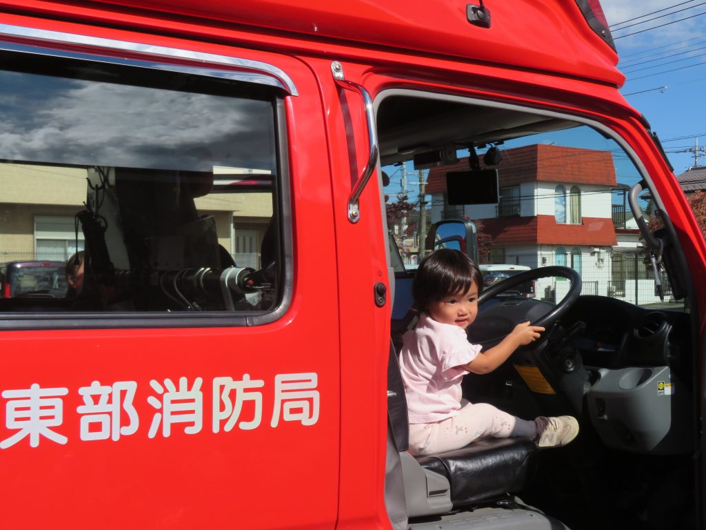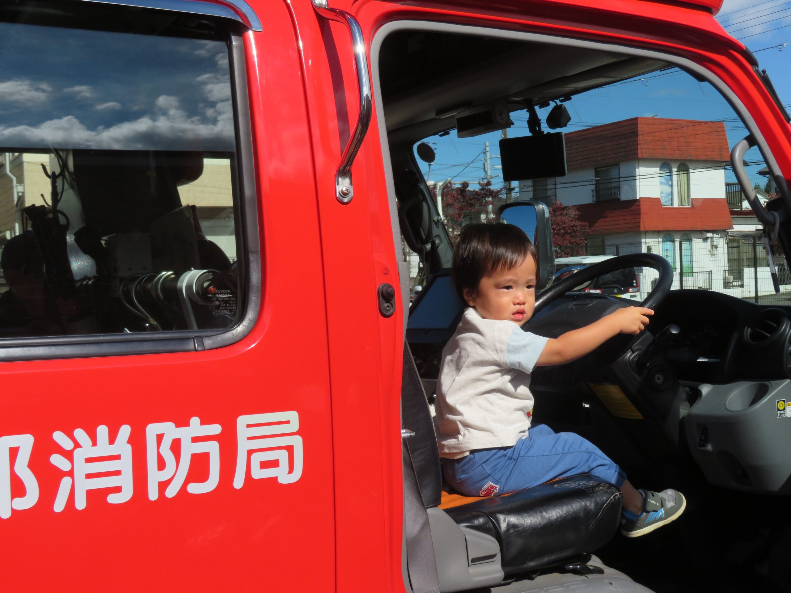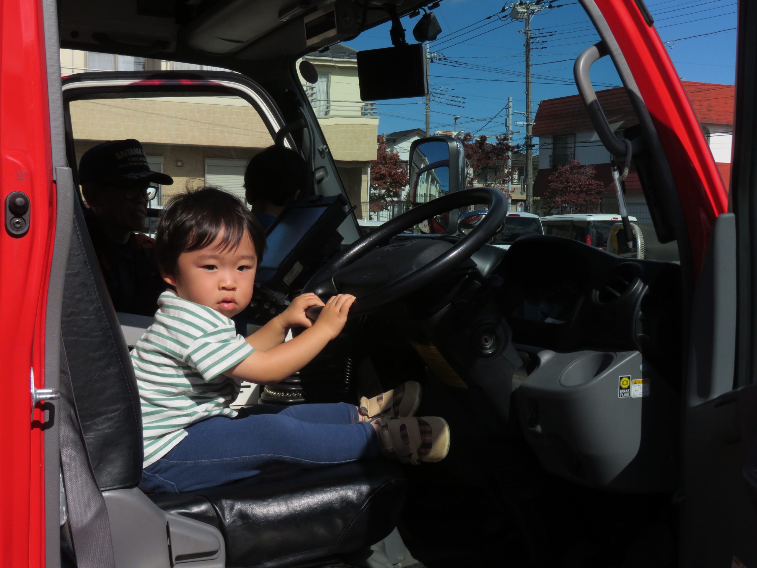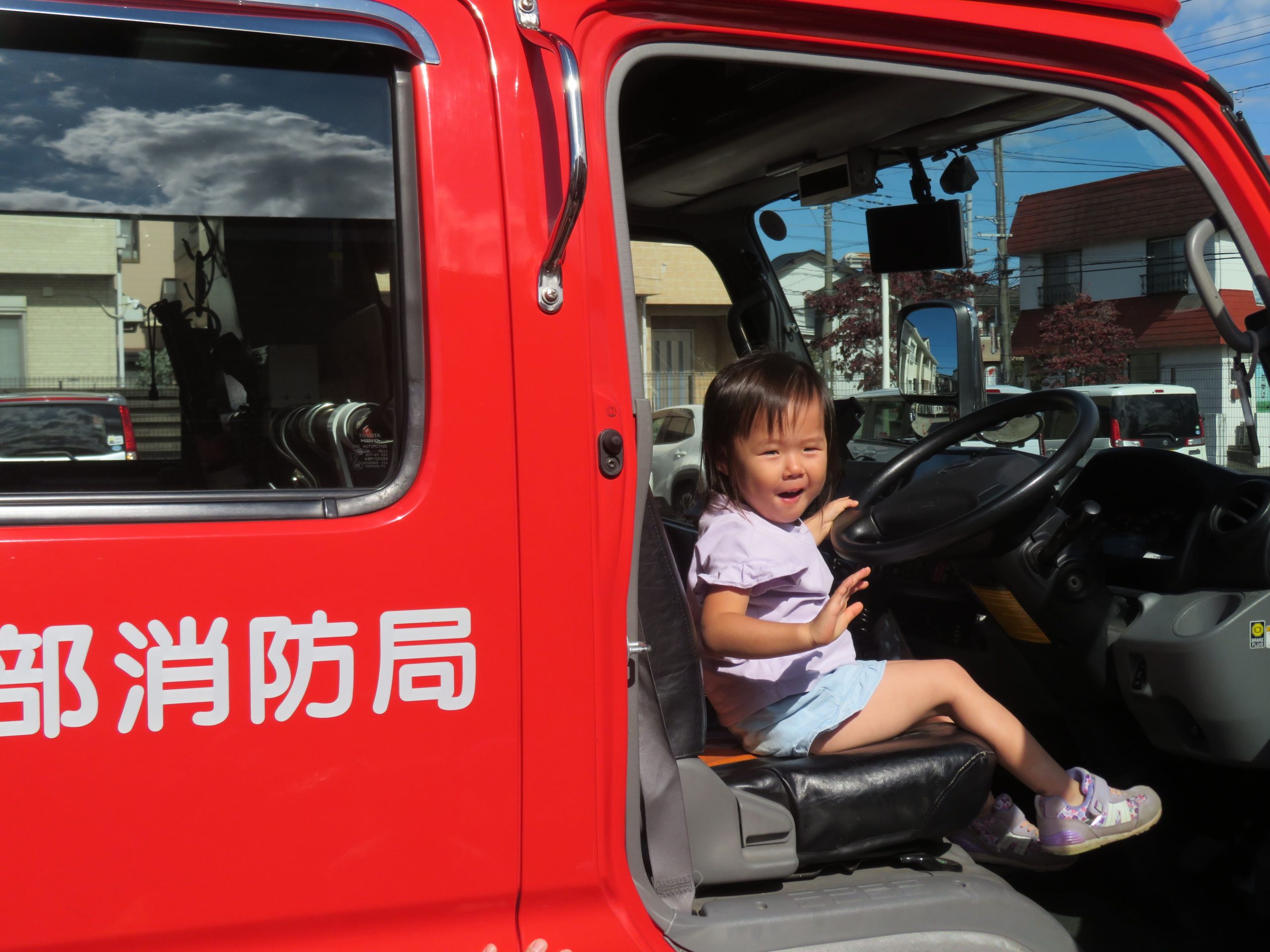 消防車を見学させてもらい、運転席に座らせてもらいました!