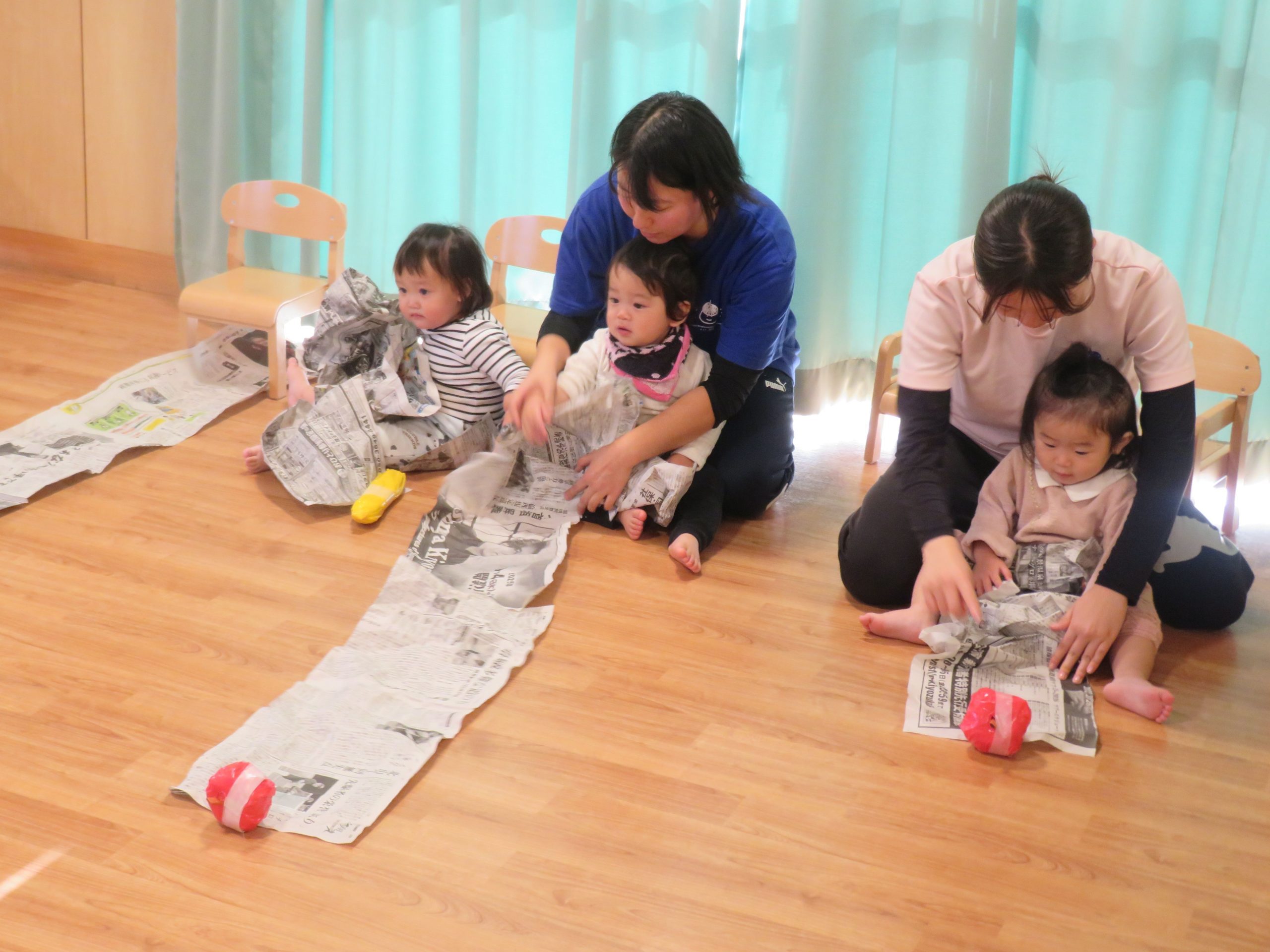 0歳児11月1歳児2歳児お楽しみ会きららの杜シルエットクイズ保育園小規模新聞引っ張りゲーム給食