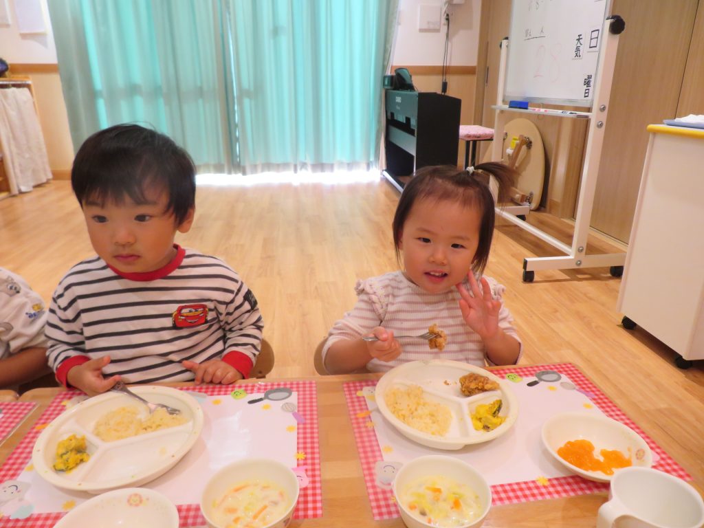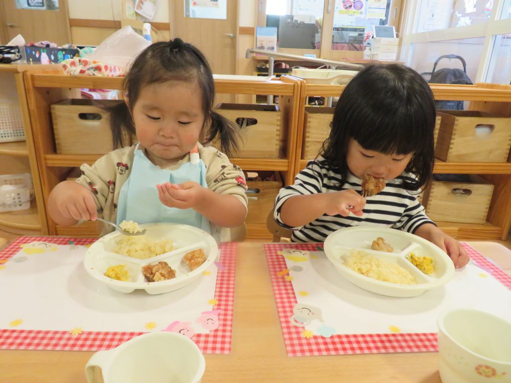 鶏のから揚げは大人気メニューなので、みんな大喜びで沢山食べていました♪
