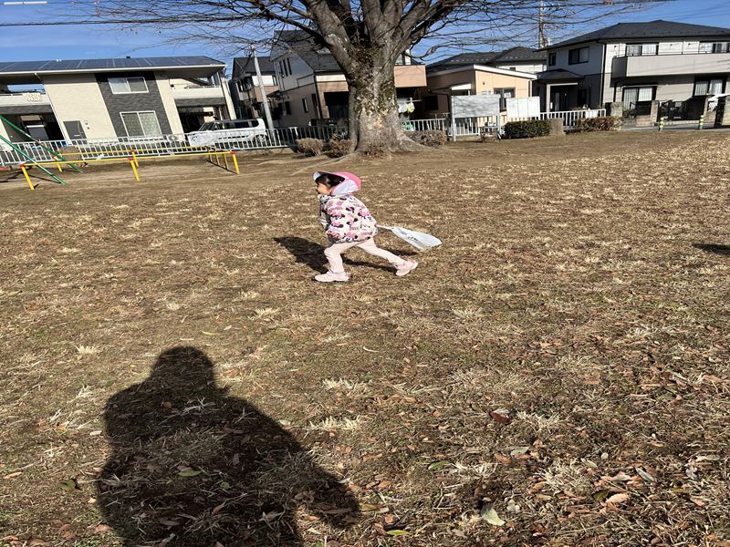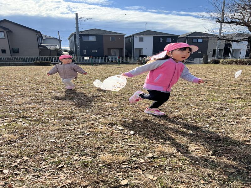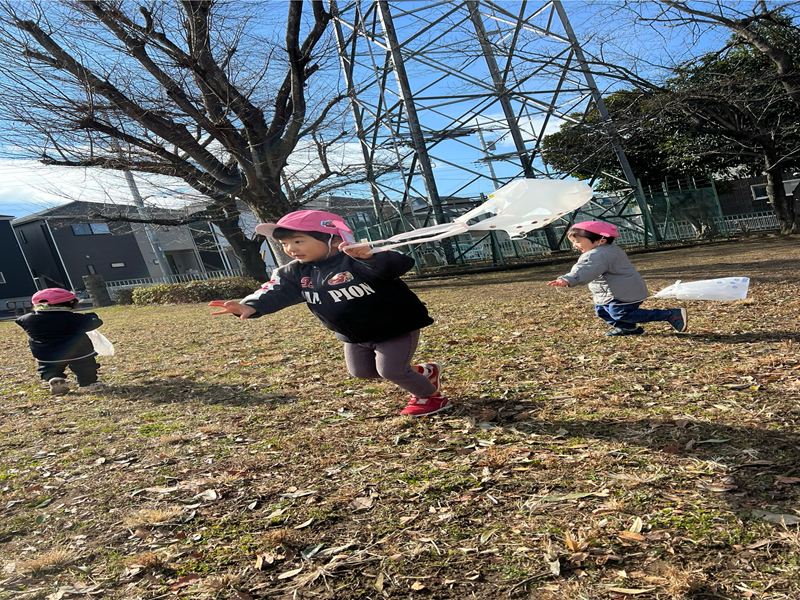 製作後は、公園に出かけて凧揚げをして遊びました。