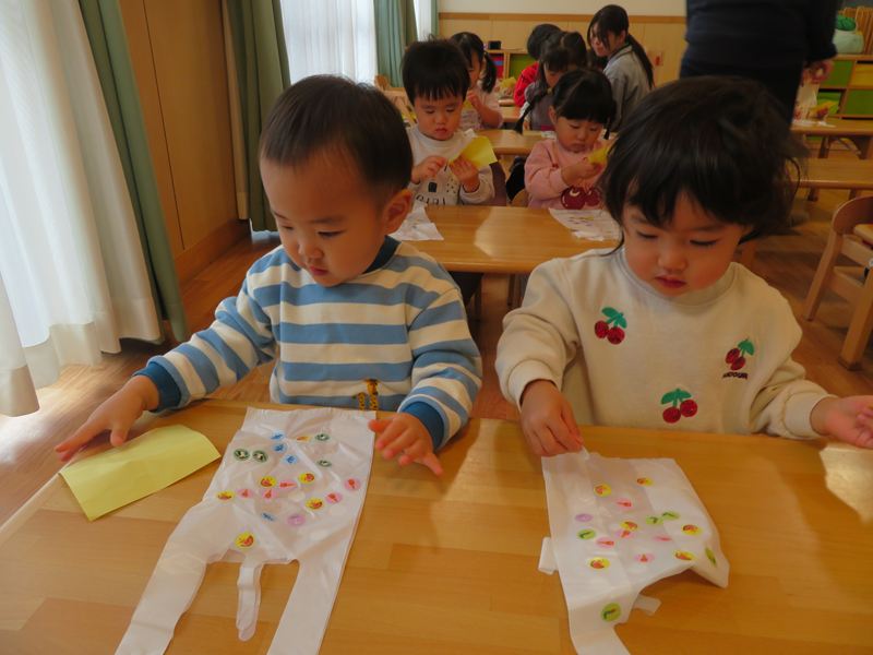 0歳児1歳児2歳児お正月遊びきららの杜久喜保育園凧揚げ凧製作小規模