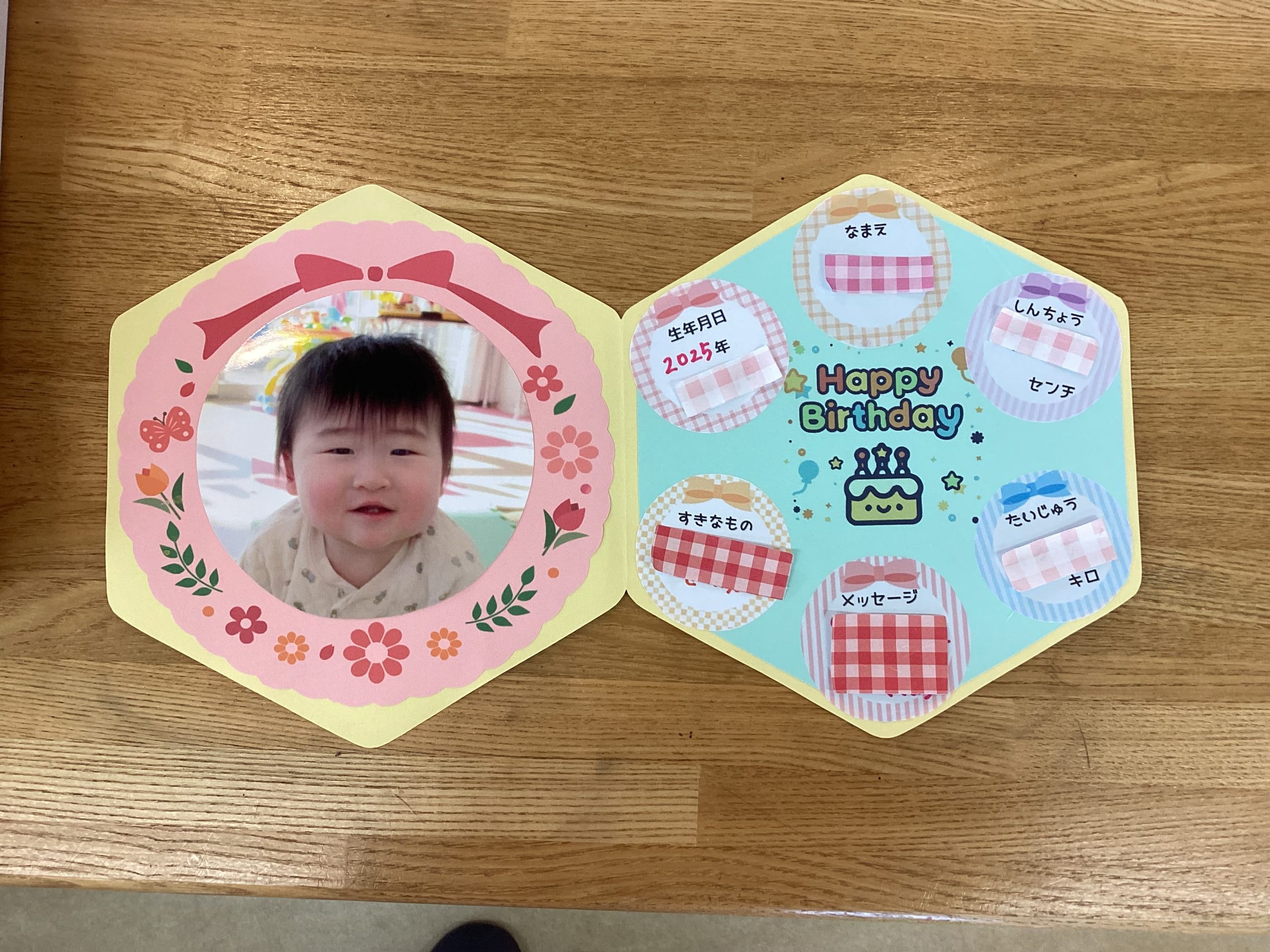 カードに名前・生年月日・メッセージなど