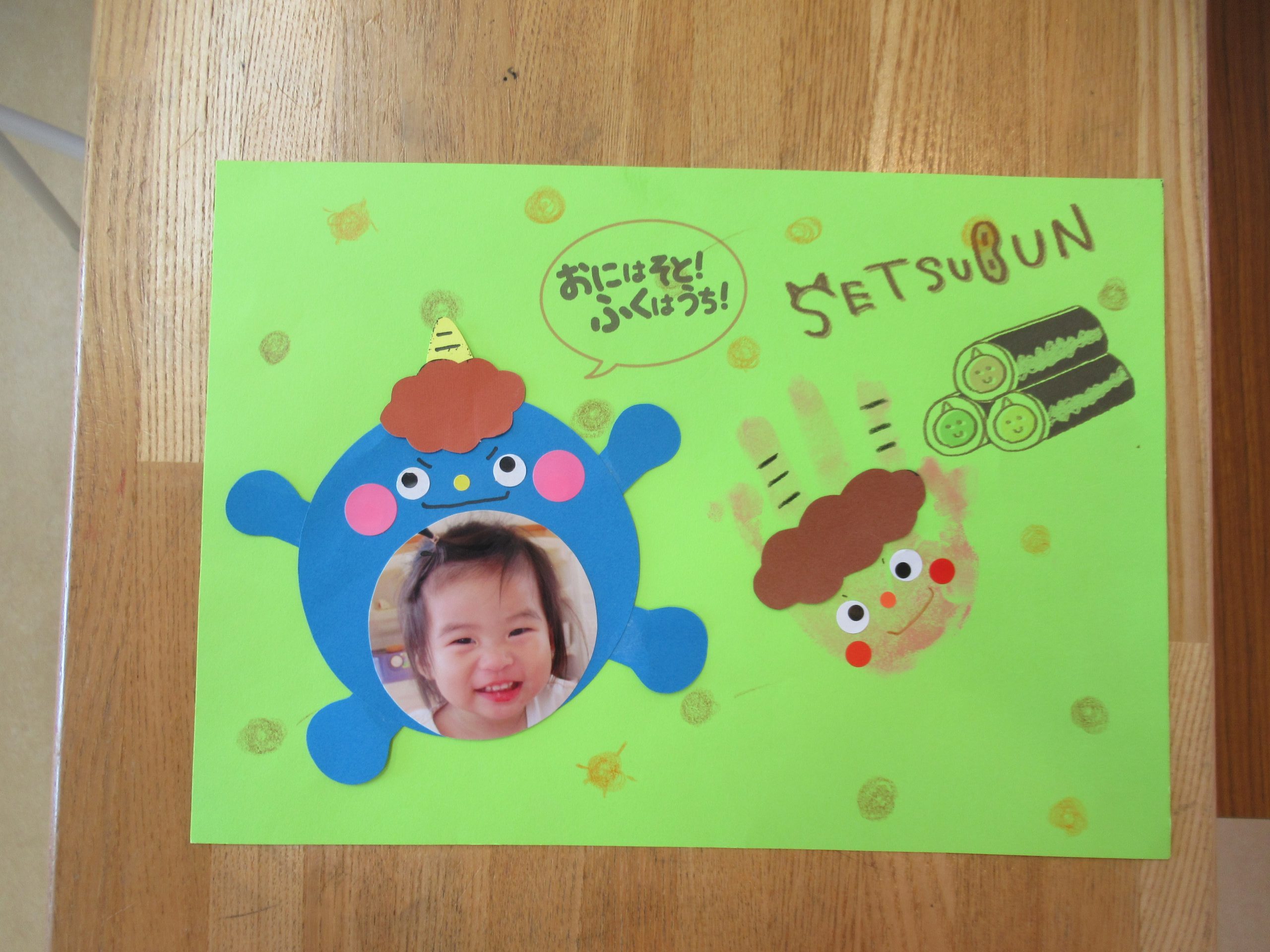 製作です♪手形や足形で「おに」を